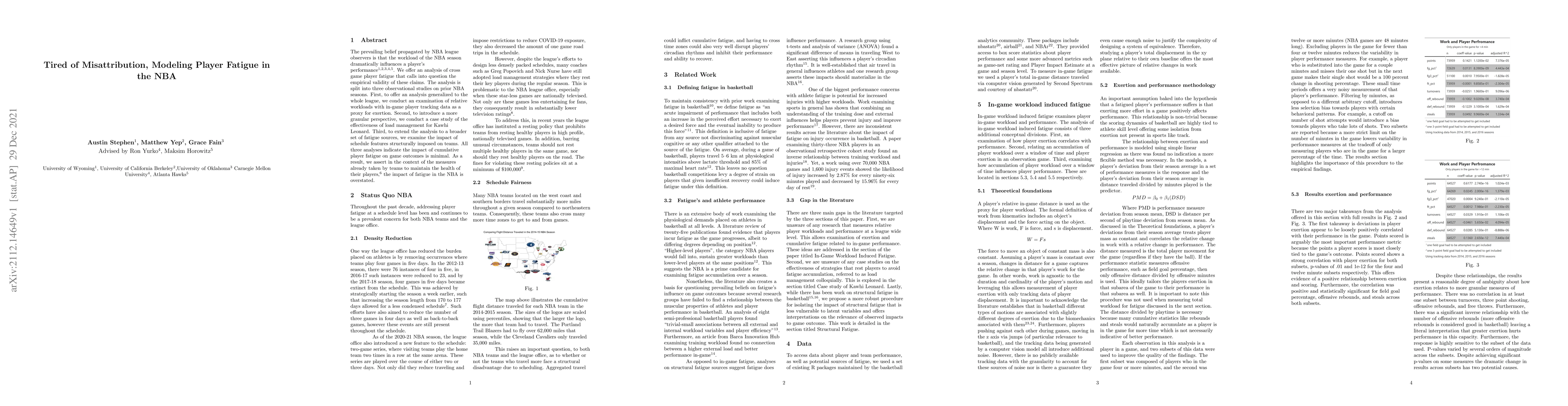 This paper challenges the notion that player fatigue significantly impacts NBA performance, presenting three studies that find minimal effects of cumulative fatigue on game outcomes, despite the common belief in its influence. The authors argue that current measures taken by teams to manage player workloads are sufficient.