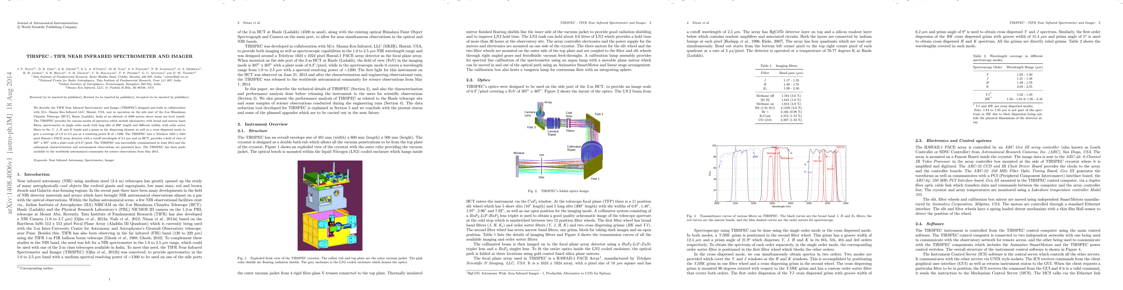 The TIFR Near Infrared Spectrometer and Imager (TIRSPEC), developed in collaboration with Mauna Kea Infrared LLC, has been installed on the Himalayan Chandra Telescope in Hanle, India, providing various modes of near-infrared observation including photometry, spectrometry, and imaging. It was successfully commissioned in 2013 and is now available for global astronomical research.