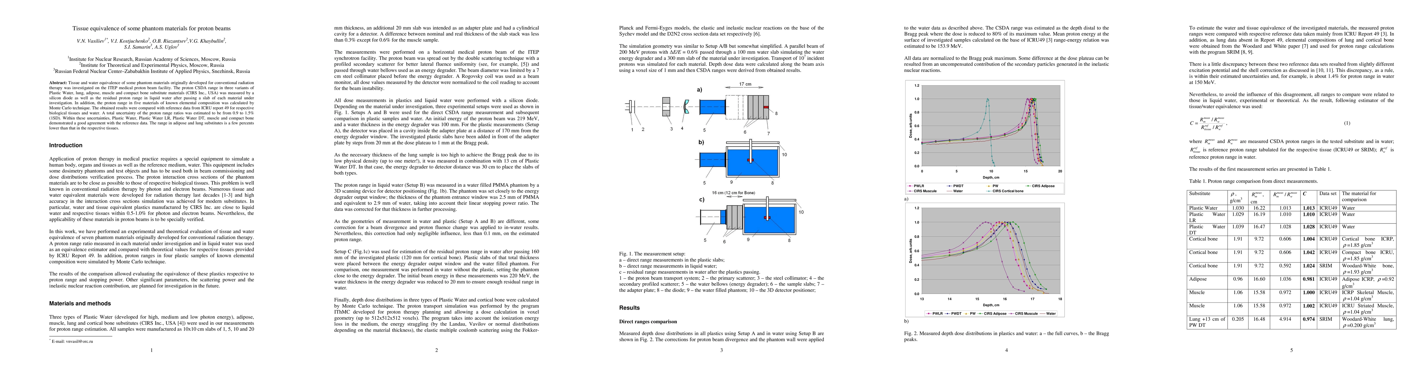 This study investigates the tissue equivalence of various phantom materials used in proton therapy, comparing their proton range with reference data from ICRU report 49. Results show good agreement for Plastic Water, muscle, and bone substitutes, while lung and adipose substitutes exhibit slightly lower ranges.