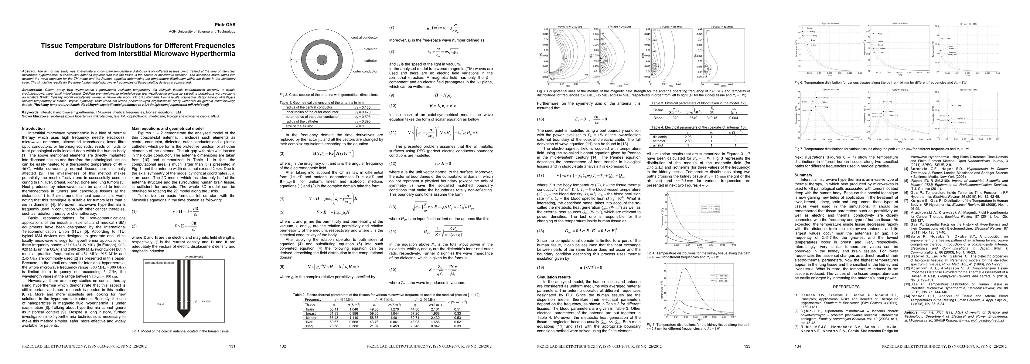 This study evaluates and compares tissue temperature distributions during interstitial microwave hyperthermia using a coaxial-slot antenna at three fundamental microwave frequencies, considering both wave and Pennes equations for accurate modeling. Simulation results highlight the varying thermal effects across different tissue types.