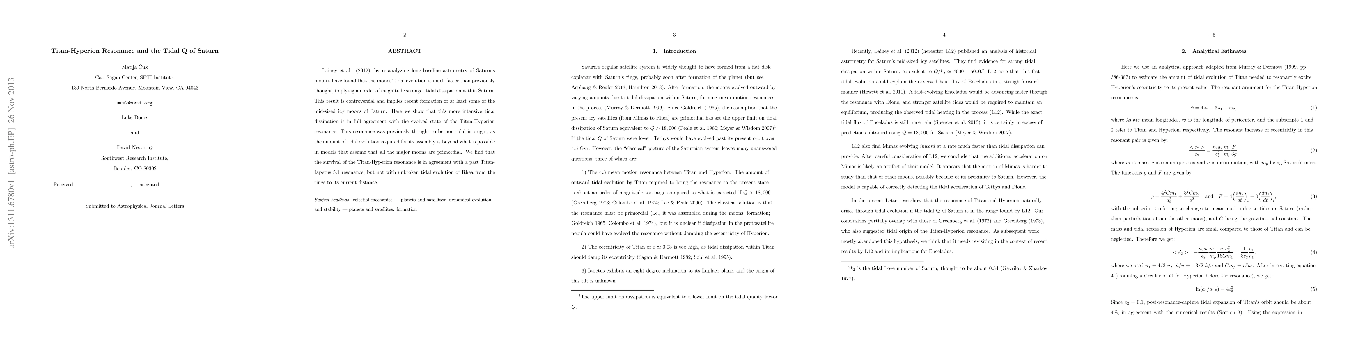 This paper demonstrates that the rapid tidal evolution of Saturn's moons, as inferred from re-analyzed astrometry, aligns with the evolved state of the Titan-Hyperion resonance, suggesting a stronger tidal dissipation within Saturn. The resonance's existence supports the idea of recent formation of some mid-sized icy moons.