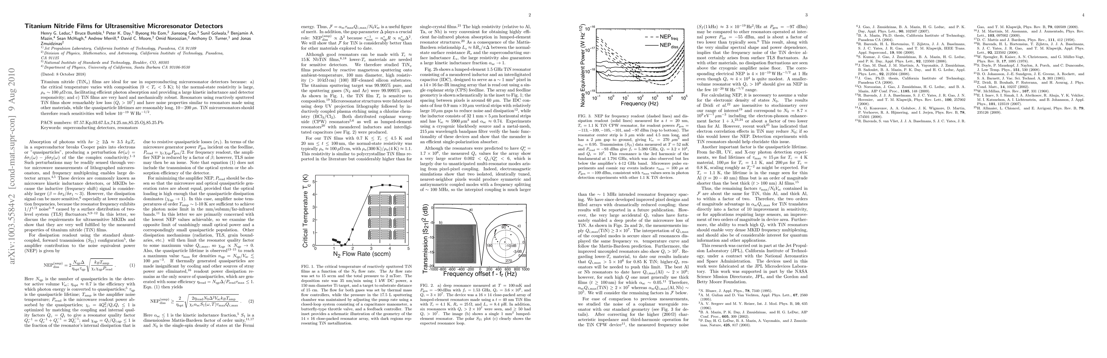 Titanium nitride (TiNx) films are ideal for ultrasensitive superconducting microresonator detectors due to their high critical temperature variability, large normal-state resistivity, and mechanical robustness, achieving low loss and high sensitivity below 10^-19 WHz^(-1/2).