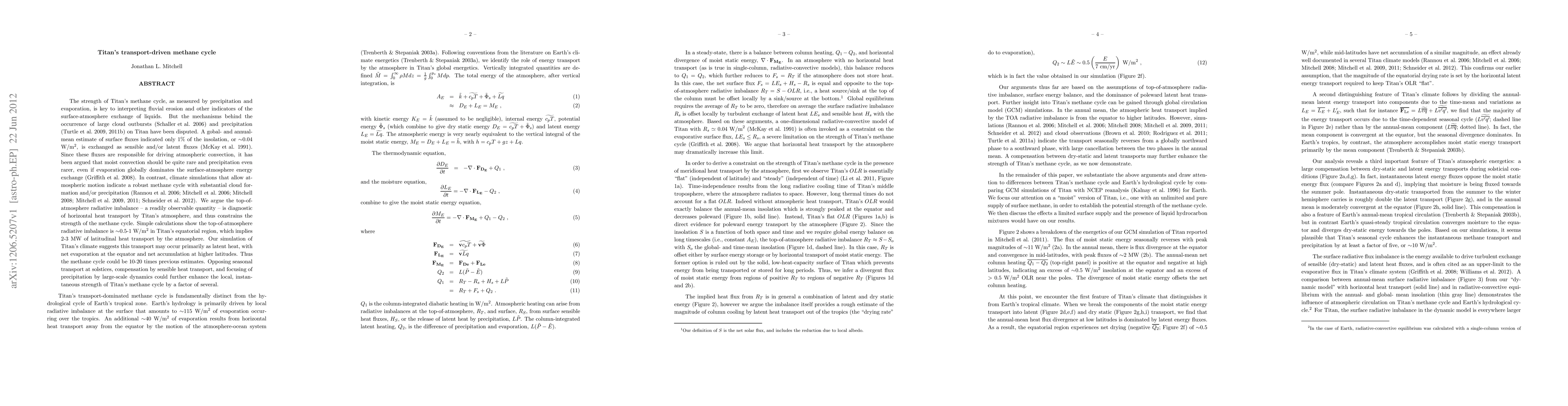 This paper argues that Titan's methane cycle is significantly stronger than previously estimated, driven by substantial horizontal heat transport in the atmosphere. Simulations suggest that latent heat transport, with net evaporation at the equator and accumulation at higher latitudes, could enhance the methane cycle by 10-20 times previous estimates.