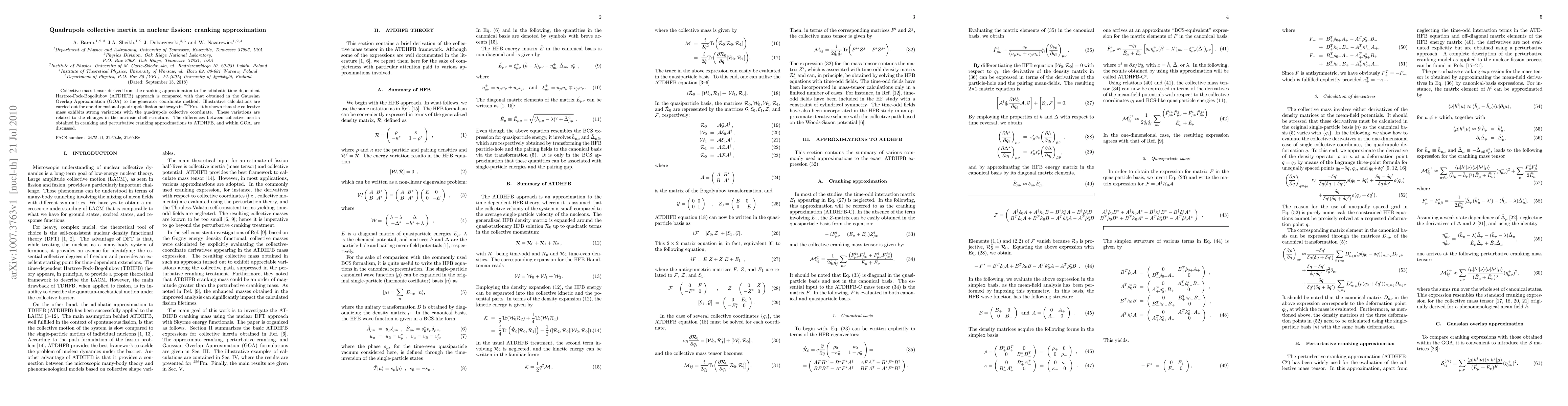 This paper compares collective mass tensors derived from the cranking approximation to the ATDHFB method and the Gaussian Overlap Approximation (GOA) in nuclear fission. It finds significant variations in the collective mass along the quadrupole fission pathway in 256Fm, linked to changes in the intrinsic shell structure, and discusses differences between these approximations.
