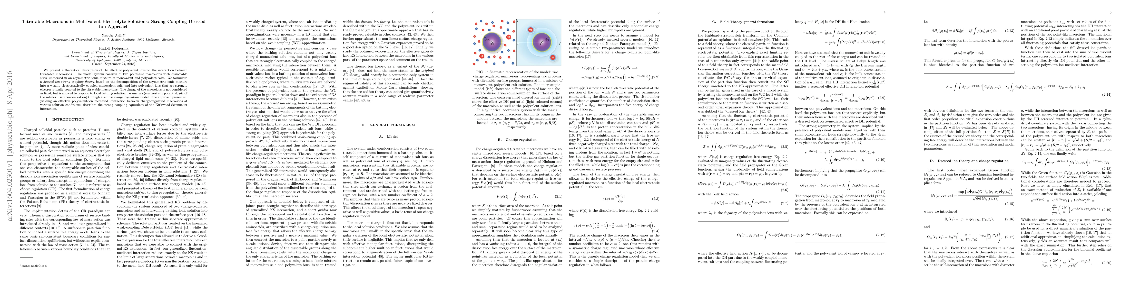 This paper develops a theoretical framework to describe the interaction between titratable macroions influenced by polyvalent ions in an asymmetric electrolyte solution. The "dressed ion strong coupling theory" accounts for the dynamic charge regulation of macroions in response to solution conditions, providing insights into polyvalent-ion mediated interactions.
