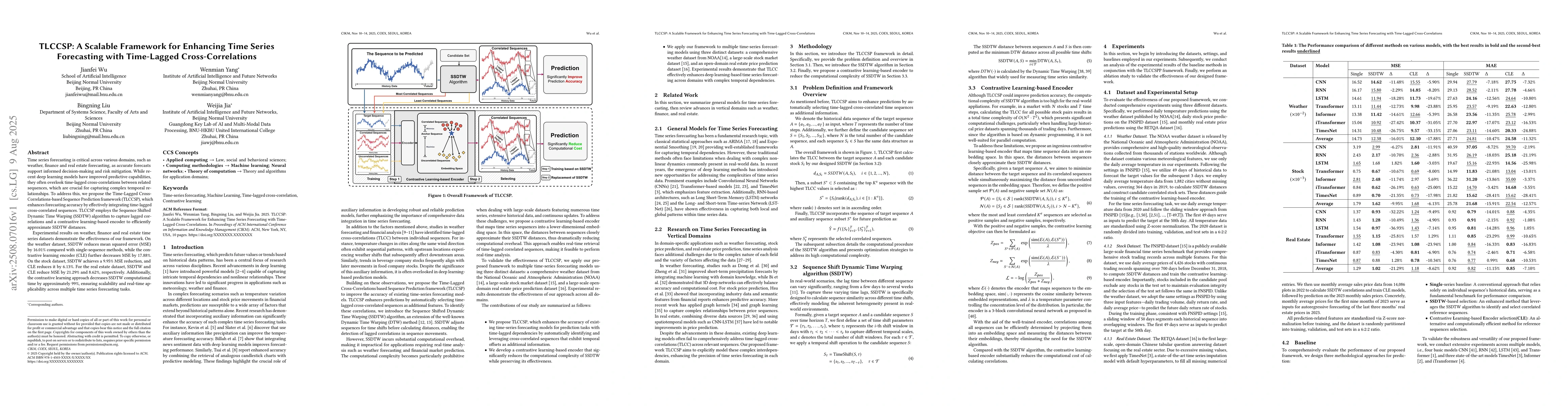 The research proposes TLCCSP, a framework integrating Time-Lagged Cross-Correlations (TLCC) using Sequence Shifted Dynamic Time Warping (SSDTW) and a contrastive learning-based encoder (CLE) to enhance time series forecasting accuracy.