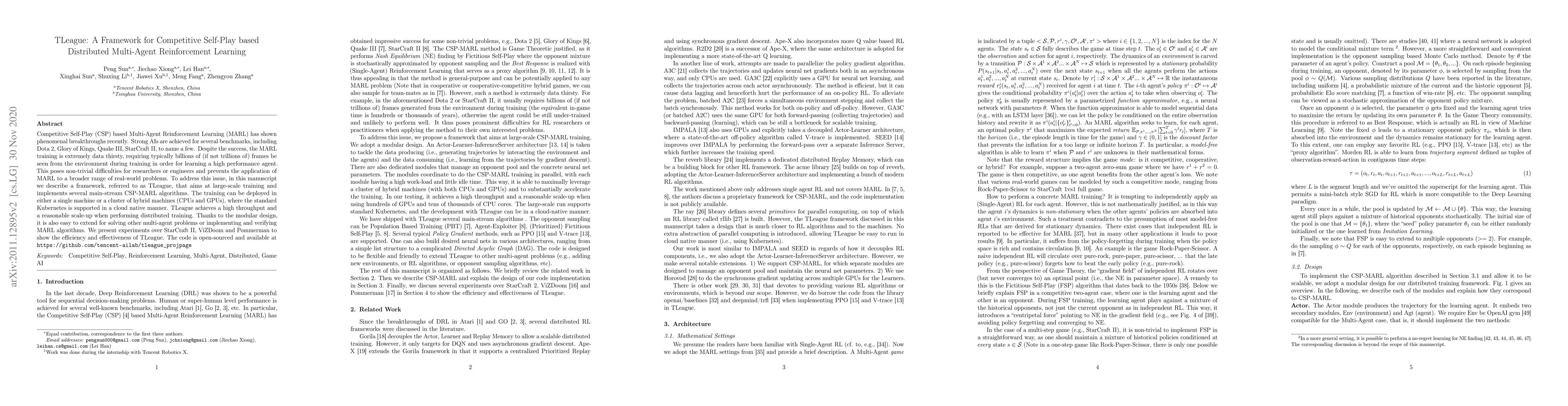 Researchers developed TLeague, a framework for distributed multi-agent reinforcement learning that tackles data scarcity issues in competitive self-play based MARL algorithms, achieving high throughput and efficiency.