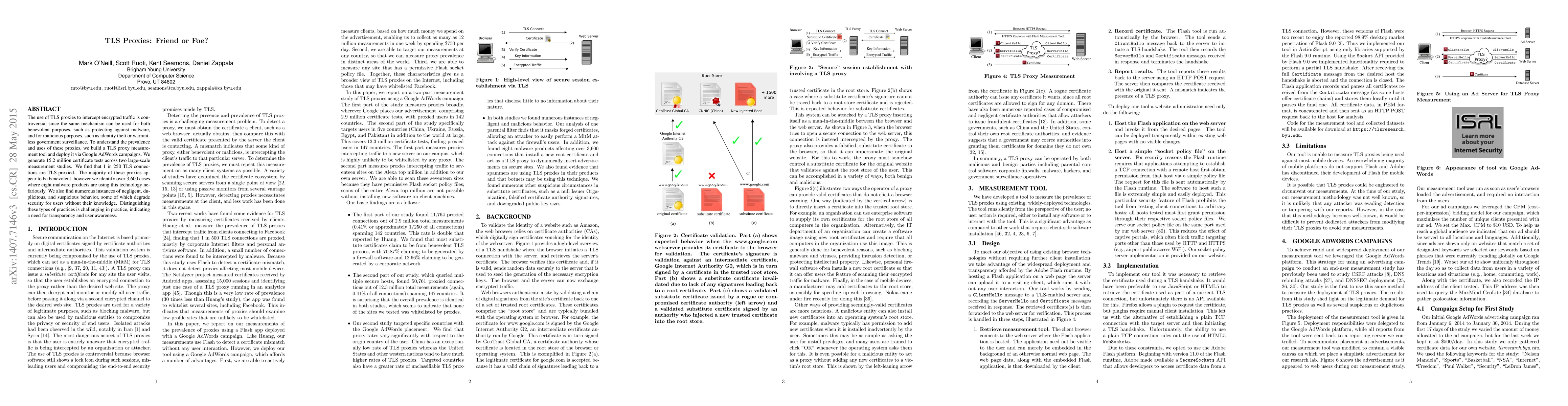 The use of TLS proxies to intercept encrypted traffic is controversial since the same mechanism can be used for both benevolent purposes, such as protecting against malware, and for malicious purposes, such as identity theft or warrantless government surveillance. To understand the prevalence and uses of these proxies, we build a TLS proxy measurement tool and deploy it via Google AdWords campaigns. We generate 15.2 million certificate tests across two large-scale measurement studies. We find that 1 in 250 TLS connections are TLS-proxied. The majority of these proxies appear to be benevolent, however we identify over 3,600 cases where eight malware products are using this technology nefariously. We also find numerous instances of negligent, duplicitous, and suspicious behavior, some of which degrade security for users without their knowledge. Distinguishing these types of practices is challenging in practice, indicating a need for transparency and user awareness.