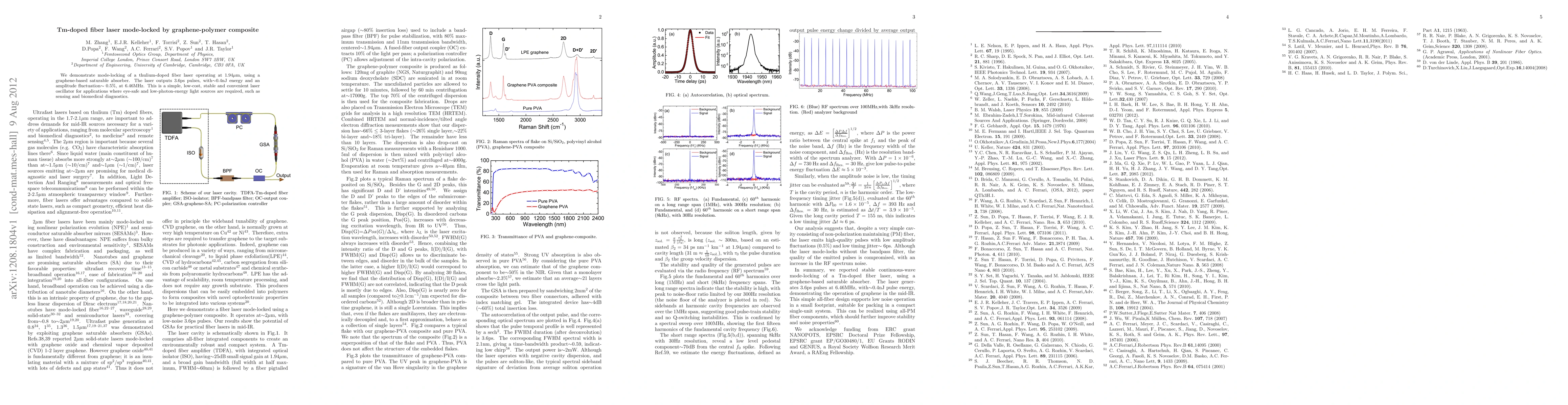 We demonstrate mode-locking of a thulium-doped fiber laser operating at 1.94\mu m, using a graphene-based saturable absorber. The laser outputs 3.6ps pulses, with~0.4nJ energy and an amplitude fluctuation~0.5%, at 6.46MHz. This is a simple, low-cost, stable and convenient laser oscillator for applications where eye-safe and low-photon-energy light sources are required, such as sensing and biomedical diagnostics