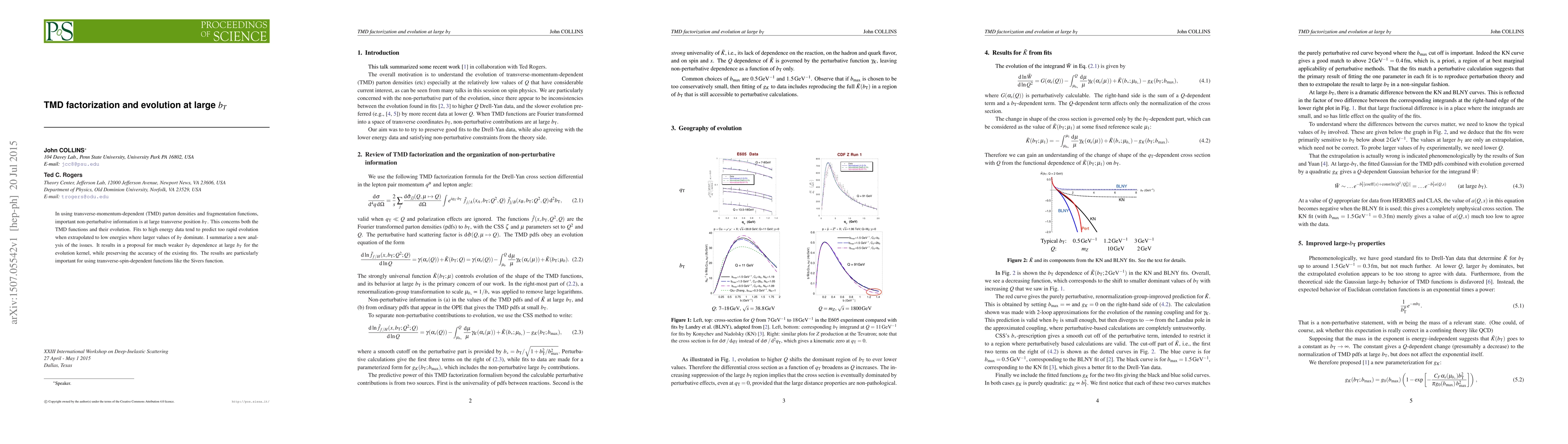 In using transverse-momentum-dependent (TMD) parton densities and fragmentation functions, important non-perturbative information is at large transverse position $b_T$. This concerns both the TMD functions and their evolution. Fits to high energy data tend to predict too rapid evolution when extrapolated to low energies where larger values of $b_T$ dominate. I summarize a new analysis of the issues. It results in a proposal for much weaker $b_T$ dependence at large $b_T$ for the evolution kernel, while preserving the accuracy of the existing fits. The results are particularly important for using transverse-spin-dependent functions like the Sivers function.