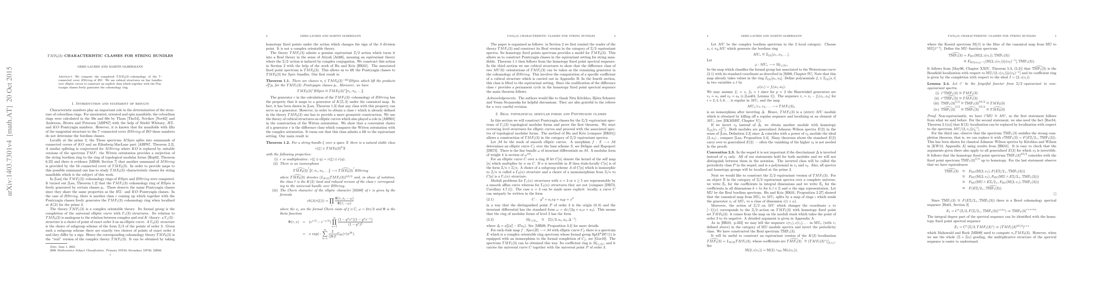 This paper computes the completed $TMF_0(3)$ cohomology of the 7-connective cover $BString$ of $BO$ and constructs an explicit class using cubical structures on line bundles over elliptic curves, which, along with Pontryagin classes, freely generates the cohomology ring.