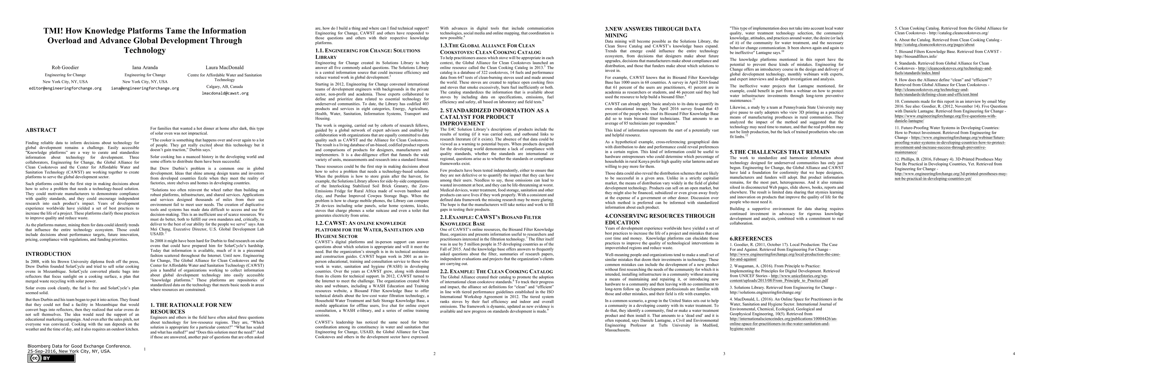 Knowledge platforms are being developed to curate and standardize information about technology for global development, aiming to reduce information overload and advance global development through technology. These platforms could identify trends that influence the entire technology ecosystem.