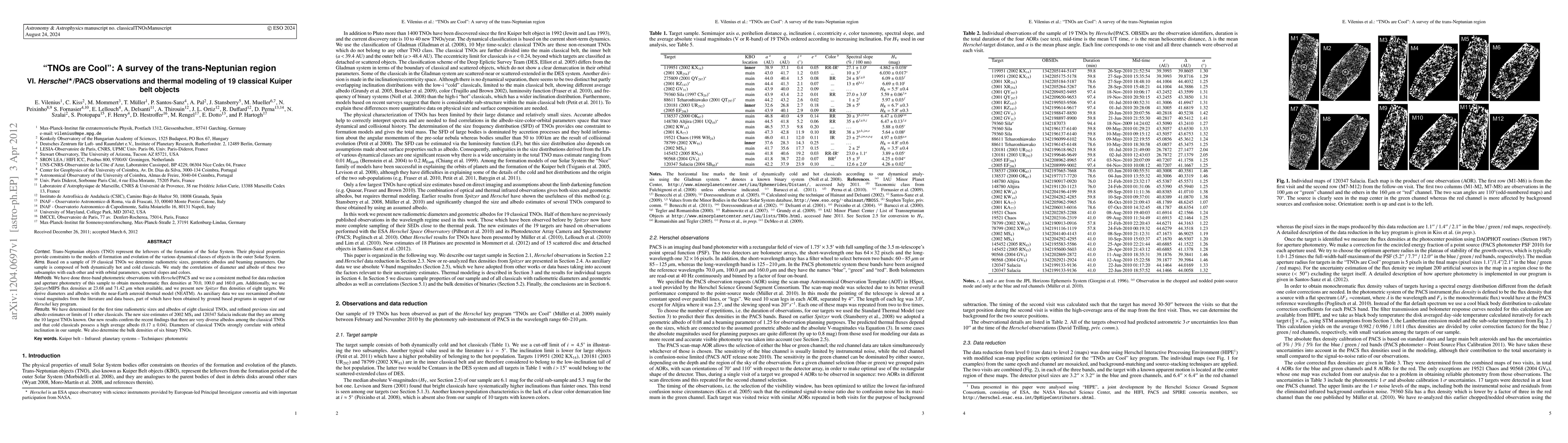 Trans-Neptunian objects (TNO) represent the leftovers of the formation of the Solar System. Their physical properties provide constraints to the models of formation and evolution of the various dynamical classes of objects in the outer Solar System. Based on a sample of 19 classical TNOs we determine radiometric sizes, geometric albedos and beaming parameters. Our sample is composed of both dynamically hot and cold classicals. We study the correlations of diameter and albedo of these two subsamples with each other and with orbital parameters, spectral slopes and colors. We have done three-band photometric observations with Herschel/PACS and we use a consistent method for data reduction and aperture photometry of this sample to obtain monochromatic flux densities at 70.0, 100.0 and 160.0 \mu m. Additionally, we use Spitzer/MIPS flux densities at 23.68 and 71.42 \mu m when available, and we present new Spitzer flux densities of eight targets. We derive diameters and albedos with the near-Earth asteroid thermal model (NEATM). As auxiliary data we use reexamined absolute visual magnitudes from the literature and data bases, part of which have been obtained by ground based programs in support of our Herschel key program. We have determined for the first time radiometric sizes and albedos of eight classical TNOs, and refined previous size and albedo estimates or limits of 11 other classicals. The new size estimates of 2002 MS4 and 120347 Salacia indicate that they are among the 10 largest TNOs known. Our new results confirm the recent findings that there are very diverse albedos among the classical TNOs and that cold classicals possess a high average albedo (0.17 +/- 0.04). Diameters of classical TNOs strongly correlate with orbital inclination in our sample. We also determine the bulk densities of six binary TNOs.