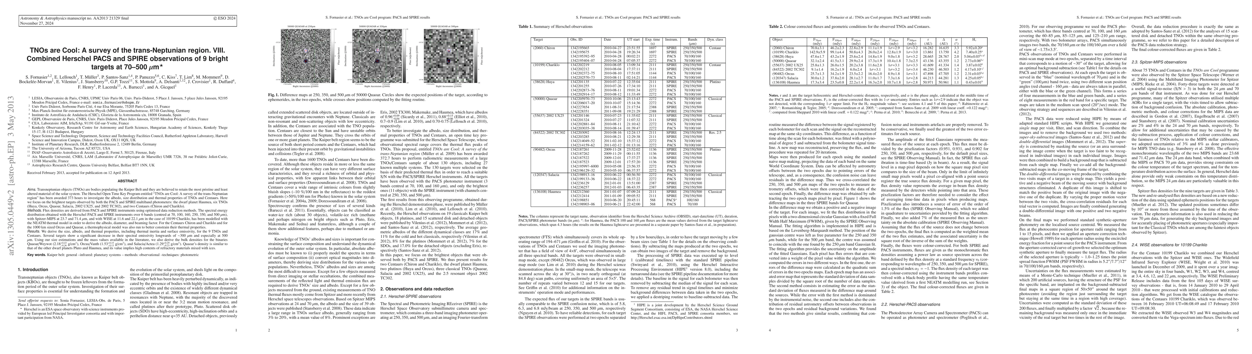 Transneptunian objects (TNOs) are bodies populating the Kuiper Belt and they are believed to retain the most pristine and least altered material of the solar system. The Herschel Open Time Key Program entitled "TNOs are Cool: A survey of the trans-Neptunian region" has been awarded 373 h to investigate the albedo, size distribution and thermal properties of TNOs and Centaurs. Here we focus on the brightest targets observed by both the PACS and SPIRE multiband photometers: the dwarf planet Haumea, six TNOs (Huya, Orcus, Quaoar, Salacia, 2002 UX25, and 2002 TC302), and two Centaurs (Chiron and Chariklo). Flux densities are derived from PACS and SPIRE instruments using optimised data reduction methods. The spectral energy distribution obtained with the Herschel PACS and SPIRE instruments over 6 bands (centred at 70, 100, 160, 250, 350, and 500 $\mu$m), and with Spitzer-MIPS at 23.7 and 71.4 $\mu$m has been modelled with the NEATM thermal model in order to derive the albedo, diameter, and beaming factor. For the Centaurs Chiron and Chariklo and for the 1000 km sized Orcus and Quaoar, a thermophysical model was also run to better constrain their thermal properties. We derive the size, albedo, and thermal properties, including thermal inertia and surface emissivity, for the 9 TNOs and Centaurs. Several targets show a significant decrease in their spectral emissivity longwards of $\sim$300 $\mu$m and especially at 500 $\mu$m. Using our size estimations and the mass values available in the literature, we also derive the bulk densities for the binaries Quaoar/Weywot (2.18$^{+0.43}_{-0.36}$ g/cm$^3$), Orcus/Vanth (1.53$^{+0.15}_{-0.13}$ g/cm$^3$), and Salacia/Actea (1.29$^{+0.29}_{-0.23}$ g/cm$^3$). Quaoar's density is similar to that of the other dwarf planets Pluto and Haumea, and its value implies high contents of refractory materials mixed with ices.