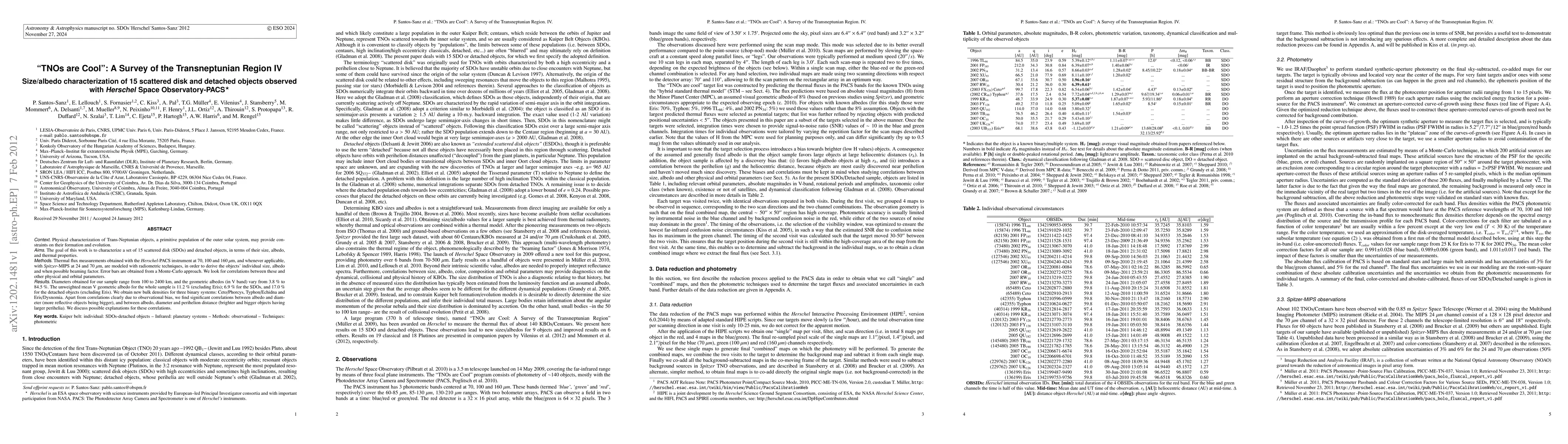 This study characterizes 15 scattered disk and detached Trans-Neptunian objects using Herschel-PACS and Spitzer-MIPS thermal flux measurements to determine their sizes, albedos, and thermal properties. The results show a wide range of diameters and geometric albedos, revealing significant correlations between albedo and size, as well as between albedo, diameter, and perihelion distance.