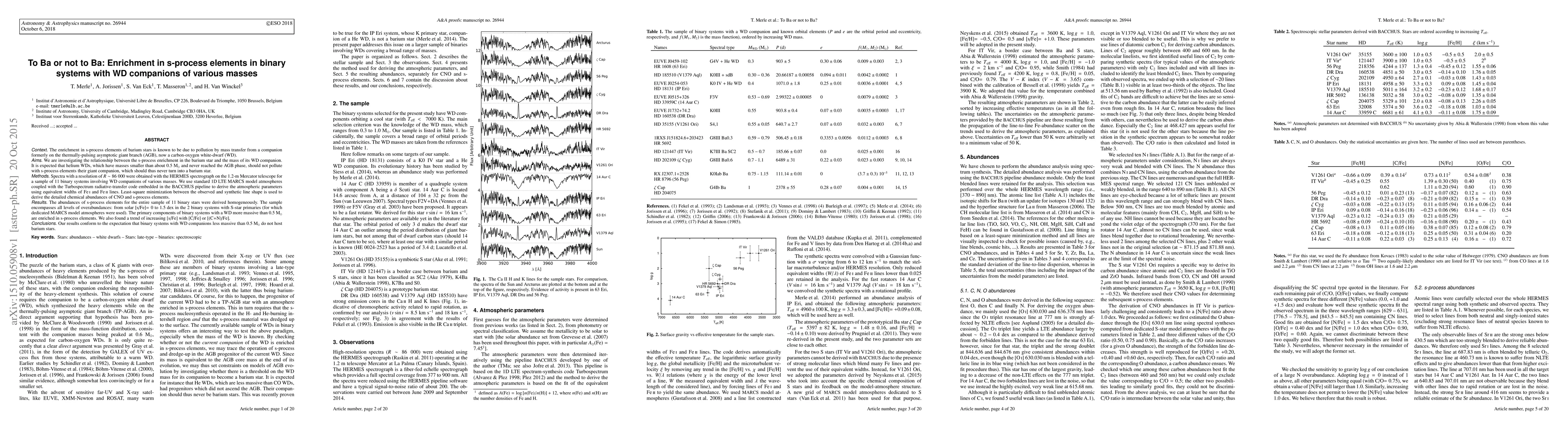 The enrichment in s-process elements of barium stars is known to be due to pollution by mass transfer from a companion formerly on the thermally-pulsing asymptotic giant branch (AGB), now a carbon-oxygen white-dwarf (WD). This paper investigates the relationship between the s-process enrichment in the barium star and the mass of its WD companion. It is expected that helium WDs, which have masses smaller than about 0.5 Msun and never reached the AGB phase, should not pollute with s-process elements their giant companion, which should thus never turn into a barium star. Spectra with a resolution of R ~ 86000 were obtained with the HERMES spectrograph on the 1.2-m Mercator telescope for a sample of 11 binary systems involving WD companions of various masses. We use standard 1D LTE MARCS model atmospheres coupled with the Turbospectrum radiative-transfer code to derive the atmospheric parameters using equivalent widths of FeI and Fe II lines. The abundances of s-process elements for the entire sample of 11 binary stars were derived homogeneously. The sample encompasses all levels of overabundances: from solar [s/Fe]=0 to 1.5 dex in the 2 binary systems with S-star primaries (for which dedicated MARCS model atmospheres were used). The primary components of binary systems with a WD more massive than 0.5 Msun are enriched in s-process elements. We also found a trend of increasing [s/Fe] with [C/Fe] or [(C+N)/Fe]. Our results conform to the expectation that binary systems with WD companions less massive than 0.5 Msun do not host barium stars.