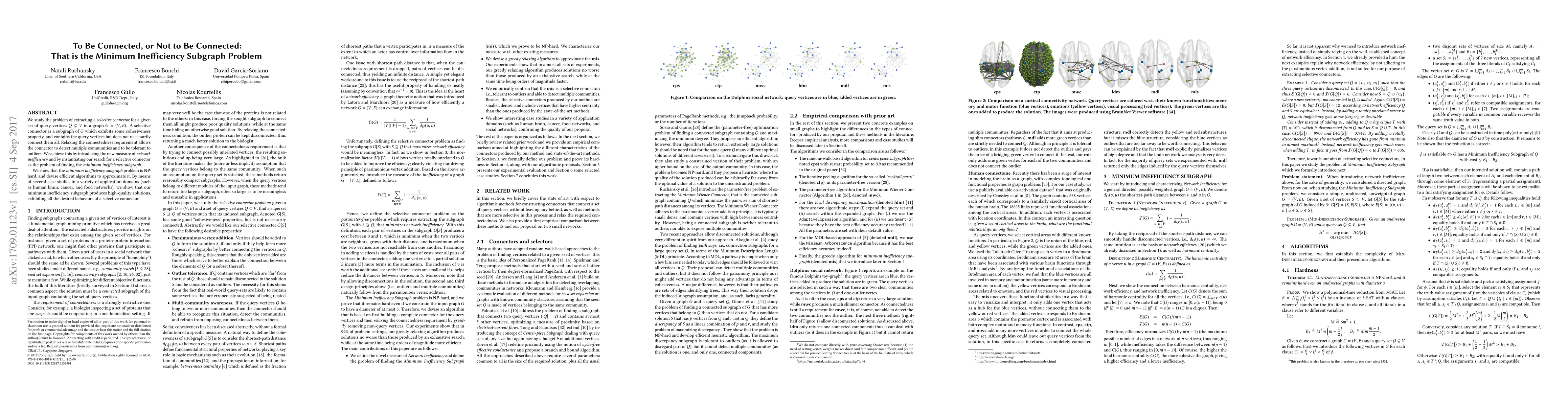 This paper investigates the minimum inefficiency subgraph problem to identify a selective connector in a graph that includes query vertices but does not necessarily connect them all. The authors demonstrate the problem's NP-hardness and propose efficient approximation algorithms, showing through various case studies that their approach effectively detects communities and tolerates outliers.