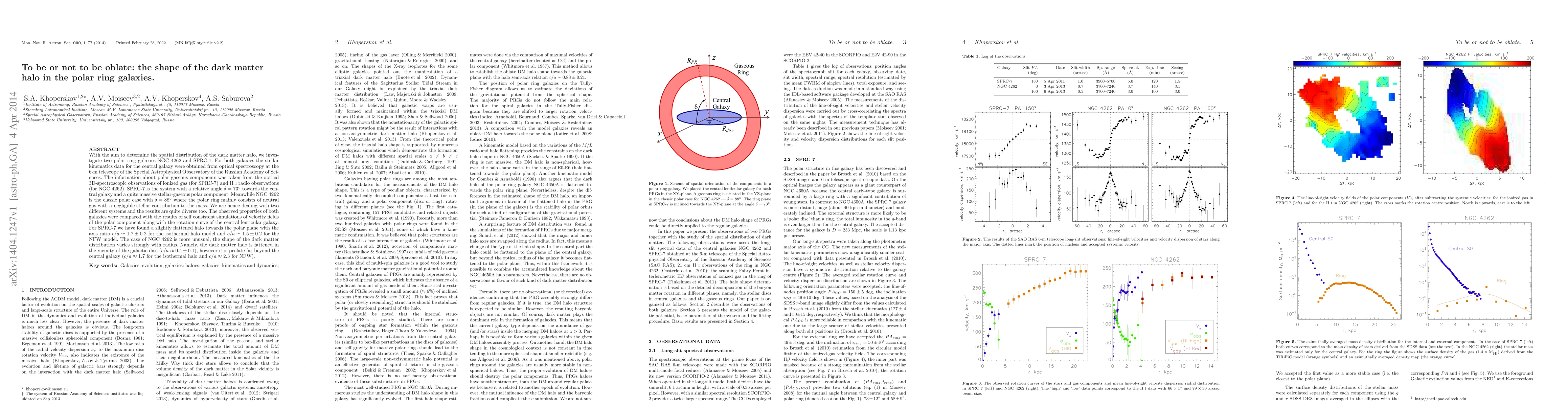 This study analyzes the dark matter halo shapes in polar ring galaxies NGC 4262 and SPRC-7 using stellar kinematics and gaseous component data. For SPRC-7, a slightly flattened halo was found with axis ratio ~1.7, while NGC 4262 exhibits a more complex dark matter distribution, fattened near the disc and prolate beyond, indicating diverse halo shapes in different polar ring systems.
