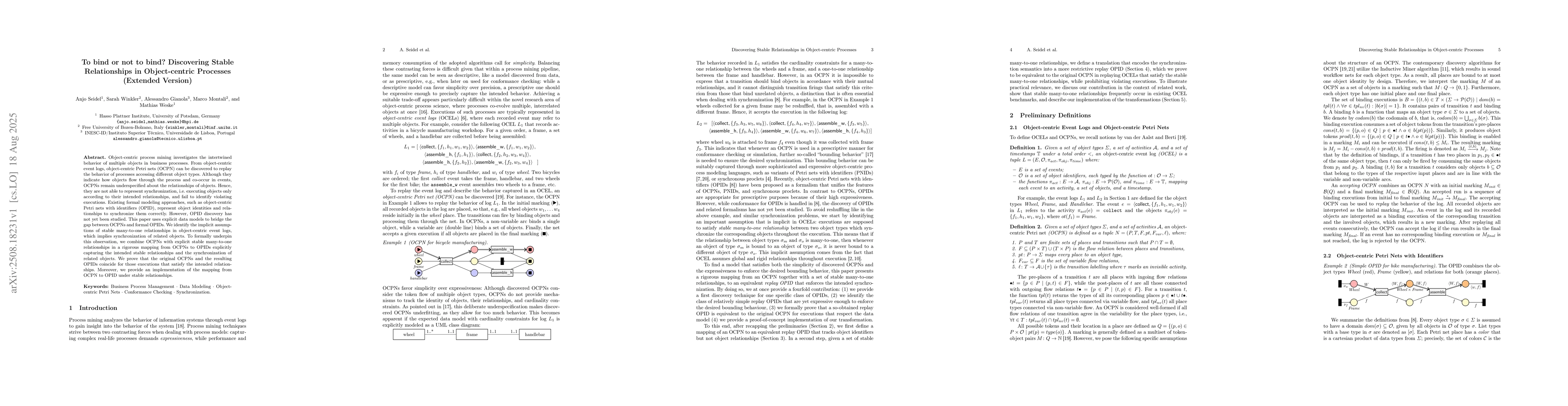 Object-centric process mining investigates the intertwined behavior of multiple objects in business processes. From object-centric event logs, object-centric Petri nets (OCPN) can be discovered to replay the behavior of processes accessing different object types. Although they indicate how objects flow through the process and co-occur in events, OCPNs remain underspecified about the relationships of objects. Hence, they are not able to represent synchronization, i.e. executing objects only according to their intended relationships, and fail to identify violating executions. Existing formal modeling approaches, such as object-centric Petri nets with identifiers (OPID), represent object identities and relationships to synchronize them correctly. However, OPID discovery has not yet been studied. This paper uses explicit data models to bridge the gap between OCPNs and formal OPIDs. We identify the implicit assumptions of stable many-to-one relationships in object-centric event logs, which implies synchronization of related objects. To formally underpin this observation, we combine OCPNs with explicit stable many-to-one relationships in a rigorous mapping from OCPNs to OPIDs explicitly capturing the intended stable relationships and the synchronization of related objects. We prove that the original OCPNs and the resulting OPIDs coincide for those executions that satisfy the intended relationships. Moreover, we provide an implementation of the mapping from OCPN to OPID under stable relationships.