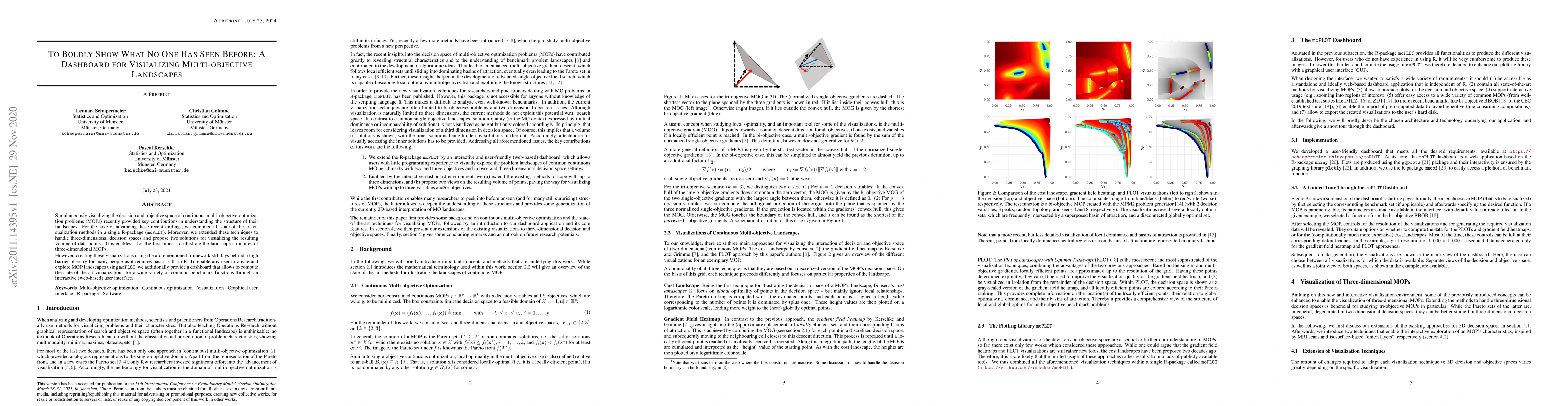 This paper presents an R-package (moPLOT) that compiles state-of-the-art visualization methods for continuous multi-objective optimization problems, extending them to three-dimensional decision spaces. It also introduces a web-based dashboard to simplify the use of these visualizations for non-R users.