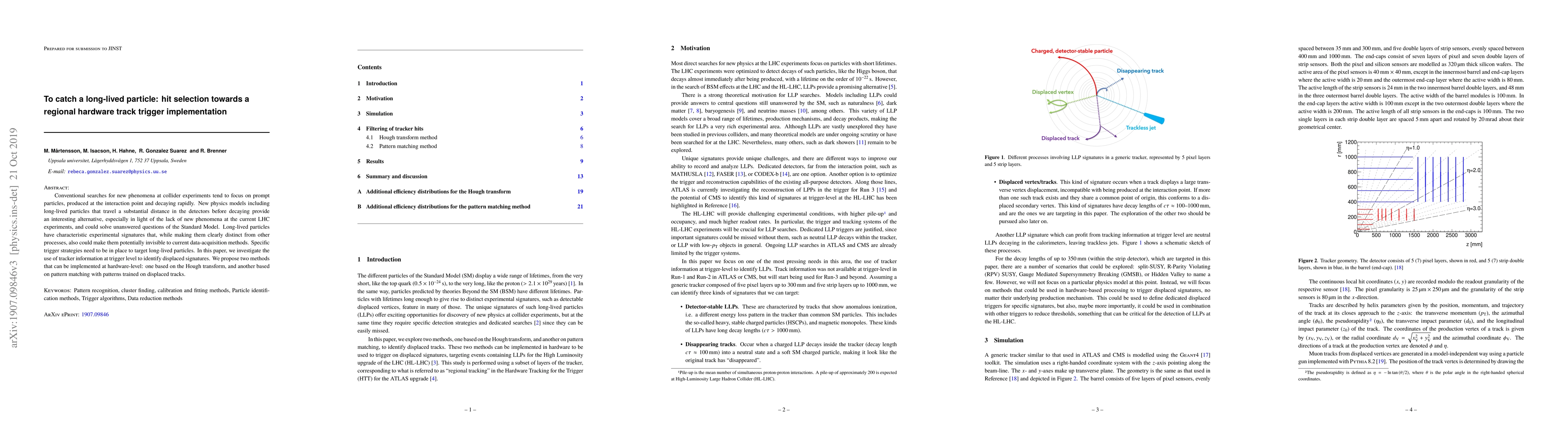 Conventional searches for new phenomena at collider experiments tend to focus on prompt particles, produced at the interaction point and decaying rapidly. New physics models including long-lived particles that travel a substantial distance in the detectors before decaying provide an interesting alternative, especially in light of the lack of new phenomena at the current LHC experiments, and could solve unanswered questions of the Standard Model. Long-lived particles have characteristic experimental signatures that, while making them clearly distinct from other processes, also could make them potentially invisible to current data-acquisition methods. Specific trigger strategies need to be in place to target long-lived particles. In this paper, we investigate the use of tracker information at trigger level to identify displaced signatures. We propose two methods that can be implemented at hardware-level: one based on the Hough transform, and another based on pattern matching with patterns trained on displaced tracks.