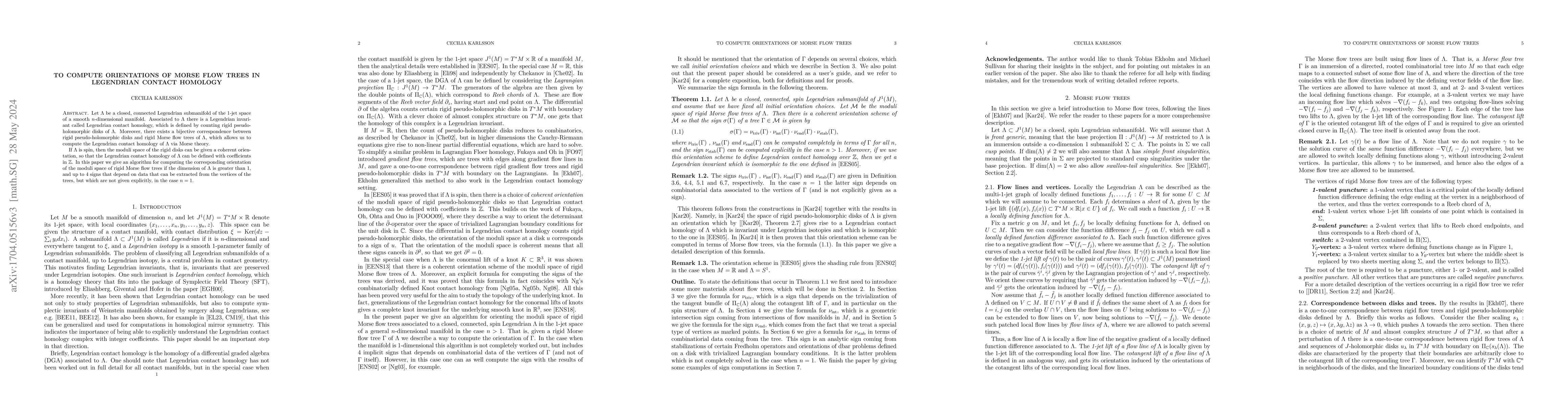 This paper presents an algorithm to compute orientations of Morse flow trees associated with Legendrian contact homology, providing coherent orientations when the Legendrian submanifold is spin. It also outlines up to four signs for lower-dimensional cases that depend on extracted vertex data.