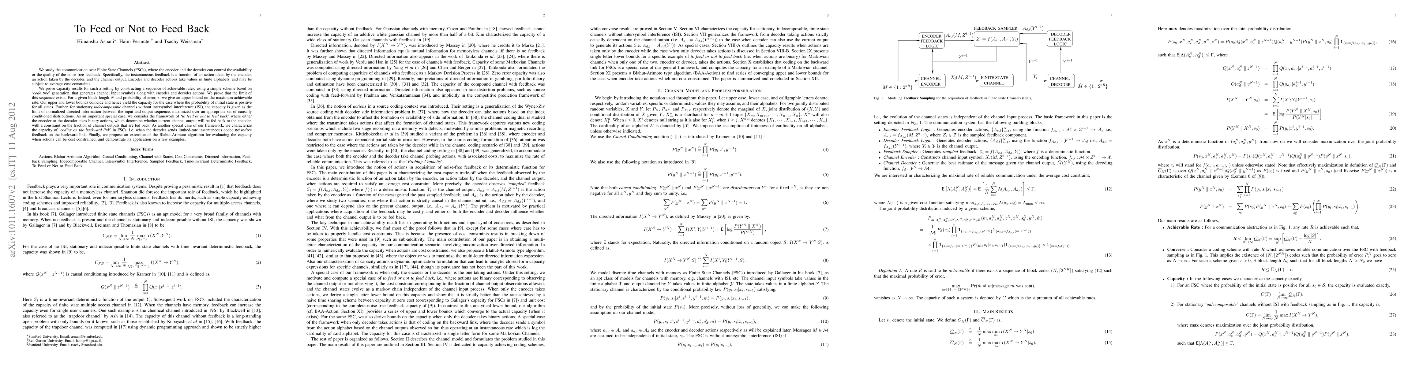 We study the communication over Finite State Channels (FSCs), where the encoder and the decoder can control the availability or the quality of the noise-free feedback. Specifically, the instantaneous feedback is a function of an action taken by the encoder, an action taken by the decoder, and the channel output. Encoder and decoder actions take values in finite alphabets, and may be subject to average cost constraints. We prove capacity results for such a setting by constructing a sequence of achievable rates, using a simple scheme based on 'code tree' generation, that generates channel input symbols along with encoder and decoder actions. We prove that the limit of this sequence exists. For a given block length and probability of error, we give an upper bound on the maximum achievable rate. Our upper and lower bounds coincide and hence yield the capacity for the case where the probability of initial state is positive for all states. Further, for stationary indecomposable channels without intersymbol interference (ISI), the capacity is given as the limit of normalized directed information between the input and output sequence, maximized over an appropriate set of causally conditioned distributions. As an important special case, we consider the framework of 'to feed or not to feed back' where either the encoder or the decoder takes binary actions, which determine whether current channel output will be fed back to the encoder, with a constraint on the fraction of channel outputs that are fed back. As another special case of our framework, we characterize the capacity of 'coding on the backward link' in FSCs, i.e. when the decoder sends limited-rate instantaneous coded noise-free feedback on the backward link. Finally, we propose an extension of the Blahut-Arimoto algorithm for evaluating the capacity when actions can be cost constrained, and demonstrate its application on a few examples.