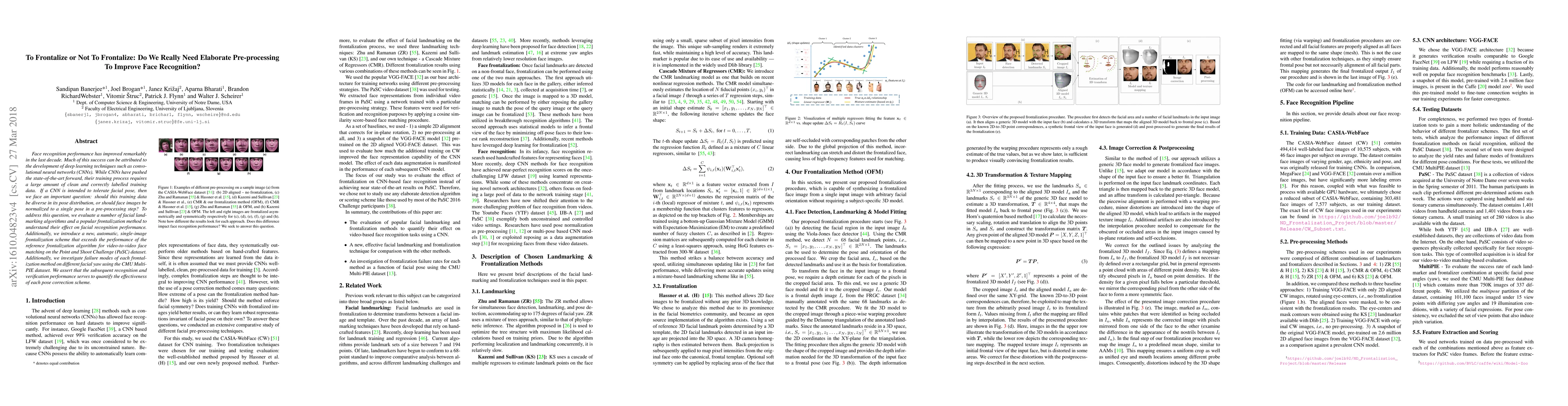 Researchers evaluated facial recognition performance with and without pre-processing to correct for pose, finding that some methods improve accuracy while others have little impact. A new automatic frontalization scheme outperforms current algorithms.