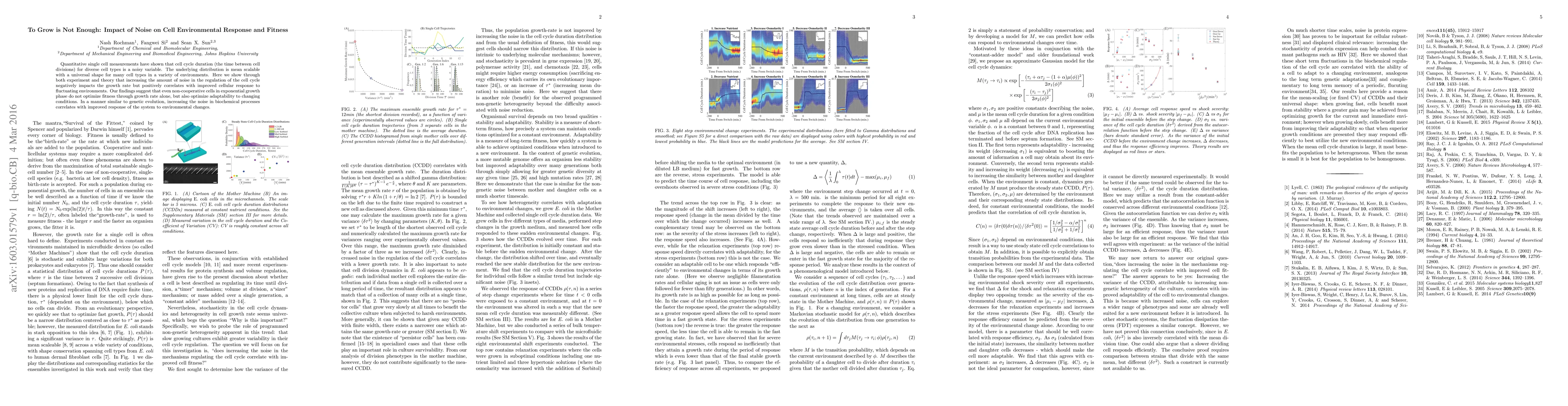 Quantitative single cell measurements have shown that cell cycle duration (the time between cell divisions) for diverse cell types is a noisy variable. The underlying distribution is mean scalable with a universal shape for many cell types in a variety of environments. Here we show through both experiment and theory that increasing the amount of noise in the regulation of the cell cycle negatively impacts the growth rate but positively correlates with improved cellular response to fluctuating environments. Our findings suggest that even non-cooperative cells in exponential growth phase do not optimize fitness through growth rate alone, but also optimize adaptability to changing conditions. In a manner similar to genetic evolution, increasing the noise in biochemical processes correlates with improved response of the system to environmental changes.