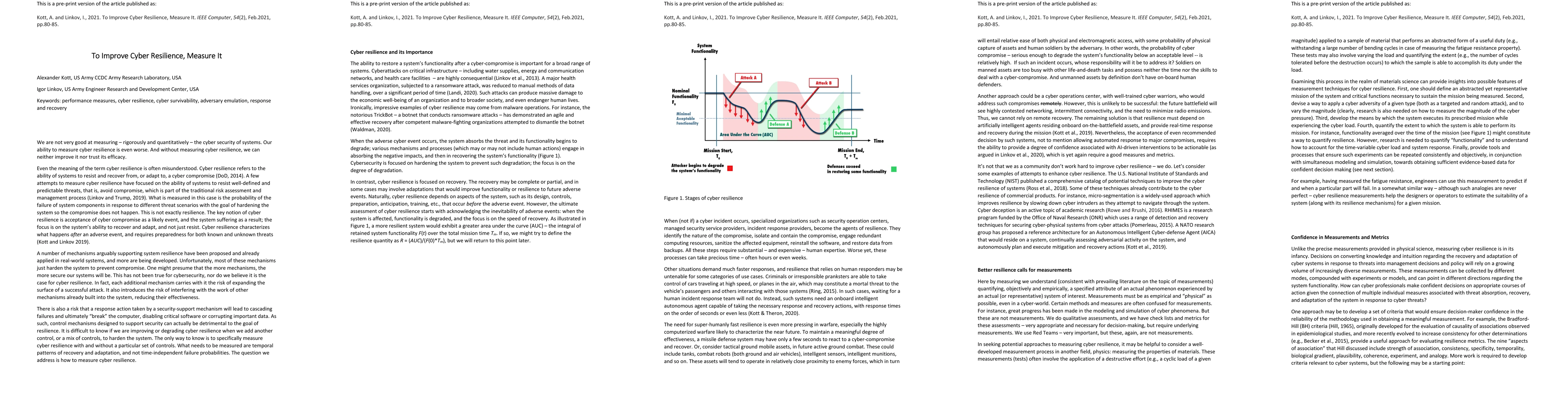 This paper argues that rigorously measuring cyber resilience is crucial for improvement and efficacy, proposing criteria to ensure reliable measurement of temporal recovery and adaptation patterns, rather than static failure probabilities. It emphasizes the necessity of such metrics to guide effective cybersecurity decision-making.
