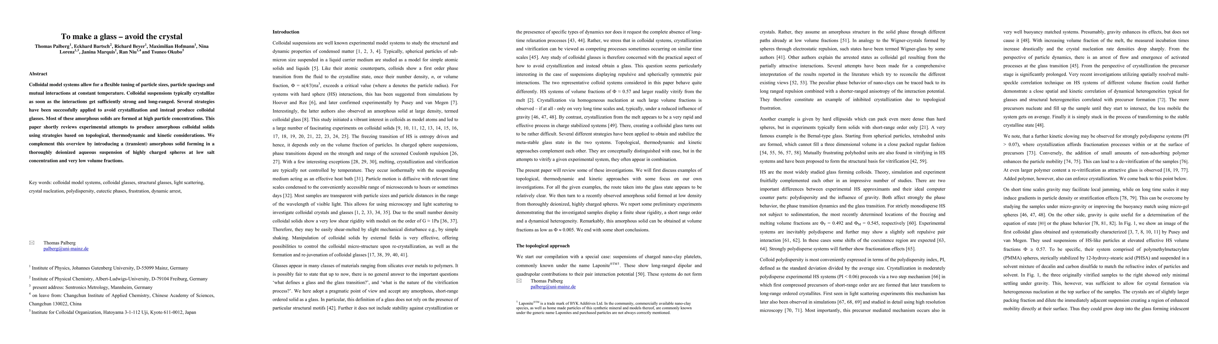 Researchers explore strategies to create amorphous colloidal solids without crystallization, focusing on particle interactions and concentration, and introduce a new method for forming such solids at low salt concentrations and volume fractions.