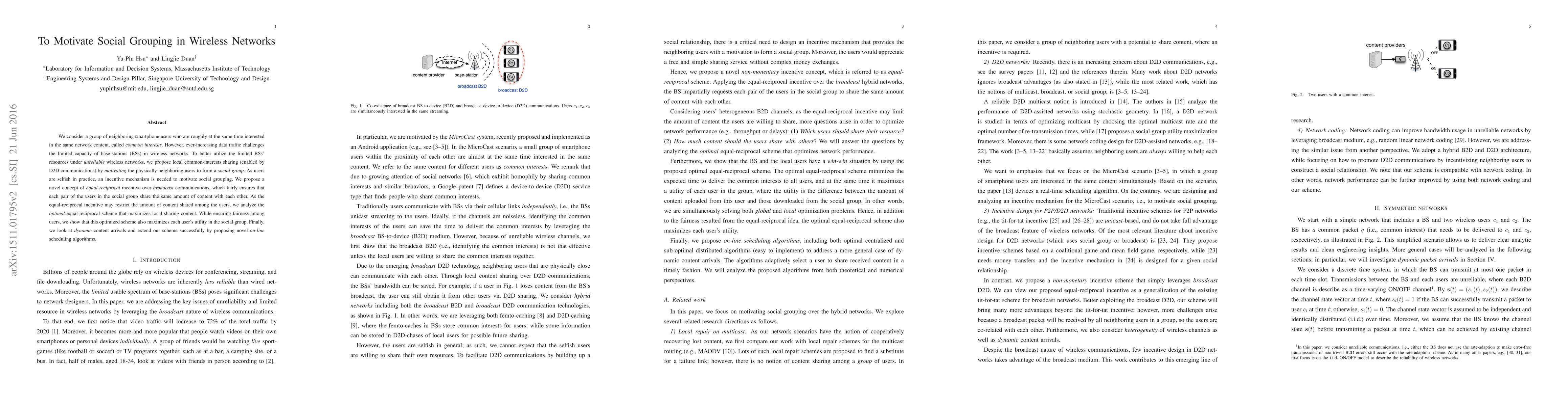 This paper proposes a method to motivate neighboring smartphone users to form social groups for local common-interest sharing via D2D communications to alleviate data traffic in wireless networks. It introduces an equal-reciprocal incentive mechanism to ensure fairness and maximizes local content sharing while adapting to dynamic content arrivals with on-line scheduling algorithms.