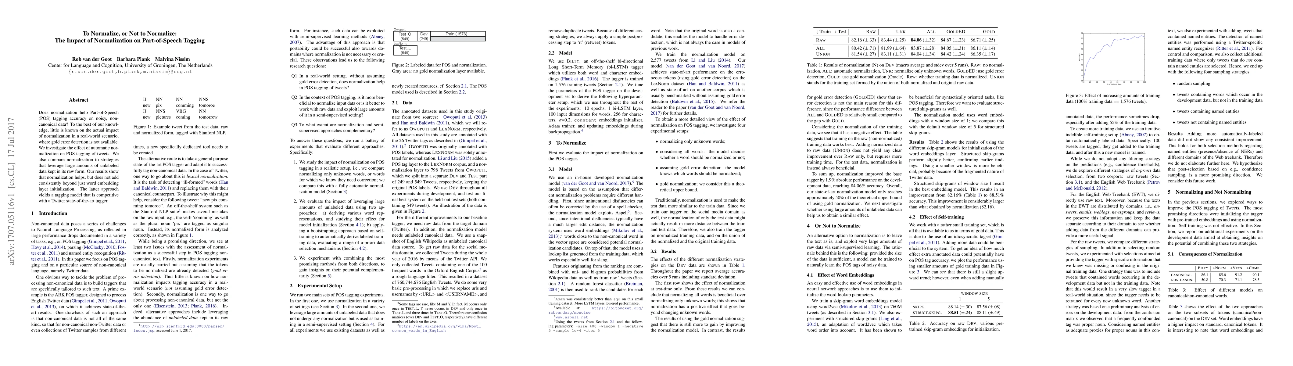 This study examines whether normalization improves Part-of-Speech tagging accuracy on noisy tweet data, finding that while normalization helps, it does not consistently outperform models using raw, unlabeled data for initialization. The best results come from models leveraging word embeddings without extensive normalization.