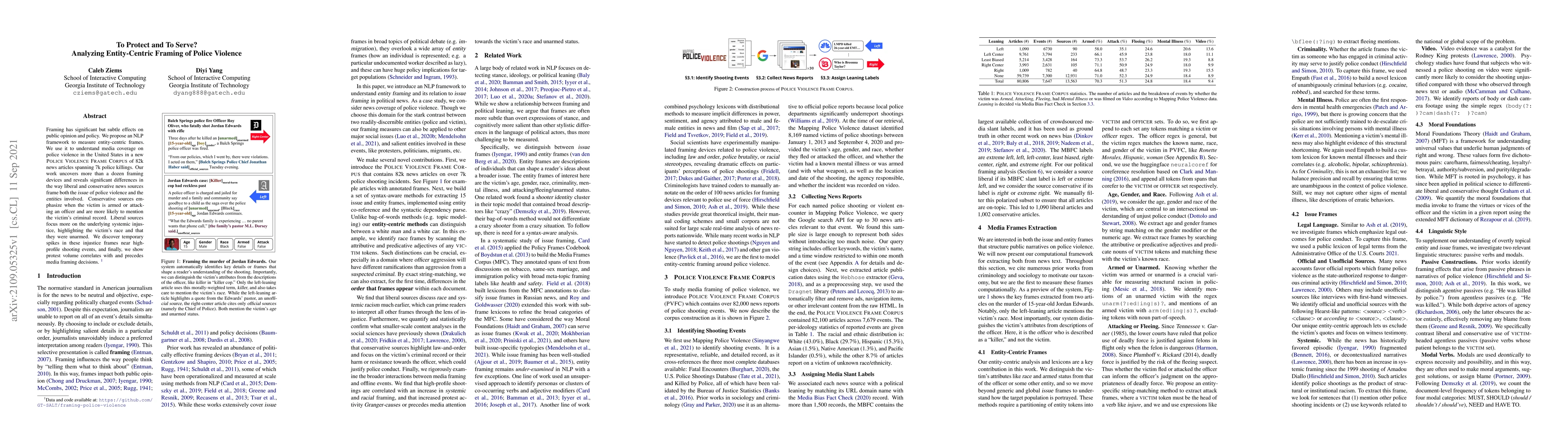 Framing has significant but subtle effects on public opinion and policy. We propose an NLP framework to measure entity-centric frames. We use it to understand media coverage on police violence in the United States in a new Police Violence Frames Corpus of 82k news articles spanning 7k police killings. Our work uncovers more than a dozen framing devices and reveals significant differences in the way liberal and conservative news sources frame both the issue of police violence and the entities involved. Conservative sources emphasize when the victim is armed or attacking an officer and are more likely to mention the victim's criminal record. Liberal sources focus more on the underlying systemic injustice, highlighting the victim's race and that they were unarmed. We discover temporary spikes in these injustice frames near high-profile shooting events, and finally, we show protest volume correlates with and precedes media framing decisions.
