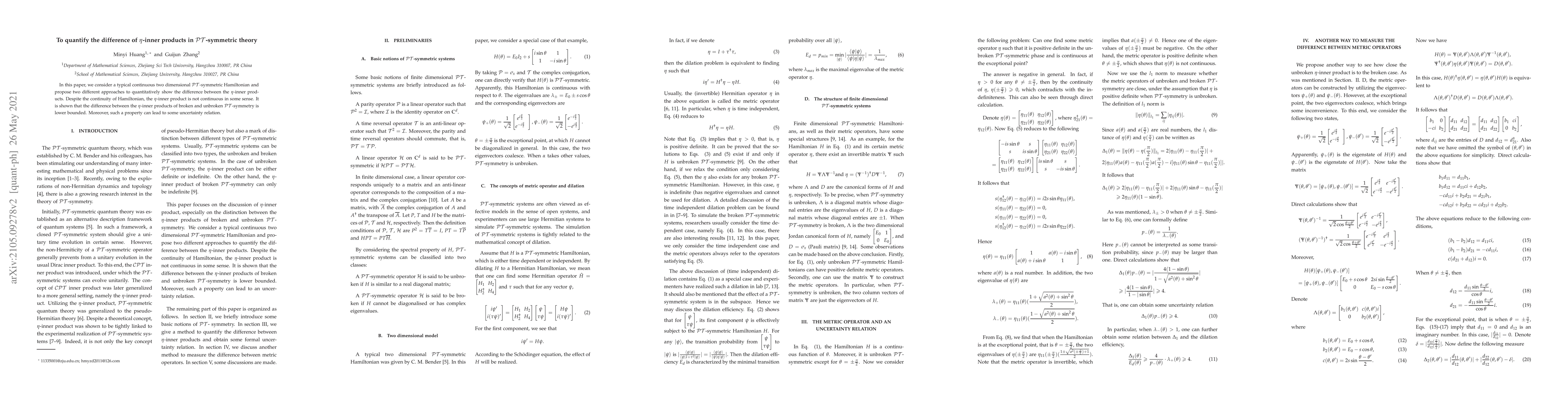 This paper investigates the difference between $ au$-inner products in PT-symmetric theory, showing that it leads to an uncertainty relation due to non-continuity of the $ au$-inner product despite a continuous Hamiltonian.