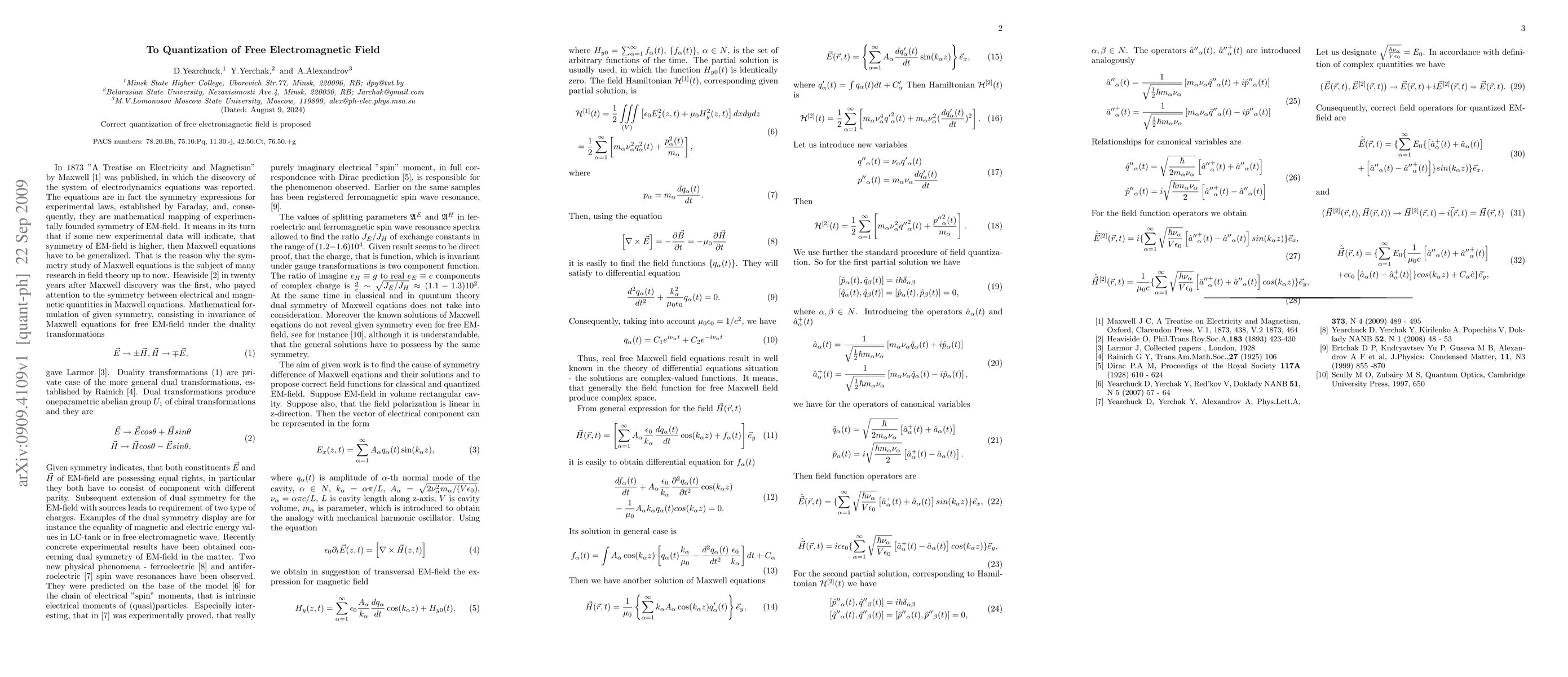 Summary: This paper proposes a novel method for the correct quantization of the free electromagnetic field, aiming to address existing theoretical challenges in the field. The approach seeks to provide a more accurate framework for understanding electromagnetic phenomena at the quantum level.