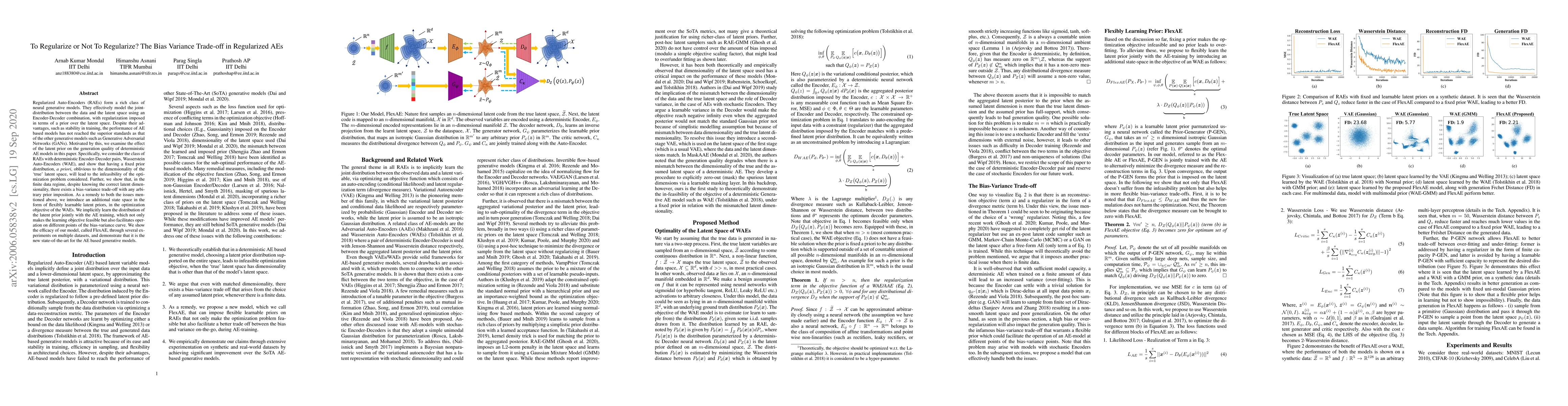 Regularized Auto-Encoders (RAEs) form a rich class of neural generative models. They effectively model the joint-distribution between the data and the latent space using an Encoder-Decoder combination, with regularization imposed in terms of a prior over the latent space. Despite their advantages, such as stability in training, the performance of AE based models has not reached the superior standards as that of the other generative models such as Generative Adversarial Networks (GANs). Motivated by this, we examine the effect of the latent prior on the generation quality of deterministic AE models in this paper. Specifically, we consider the class of RAEs with deterministic Encoder-Decoder pairs, Wasserstein Auto-Encoders (WAE), and show that having a fixed prior distribution, \textit{a priori}, oblivious to the dimensionality of the `true' latent space, will lead to the infeasibility of the optimization problem considered. Further, we show that, in the finite data regime, despite knowing the correct latent dimensionality, there exists a bias-variance trade-off with any arbitrary prior imposition. As a remedy to both the issues mentioned above, we introduce an additional state space in the form of flexibly learnable latent priors, in the optimization objective of the WAEs. We implicitly learn the distribution of the latent prior jointly with the AE training, which not only makes the learning objective feasible but also facilitates operation on different points of the bias-variance curve. We show the efficacy of our model, called FlexAE, through several experiments on multiple datasets, and demonstrate that it is the new state-of-the-art for the AE based generative models.