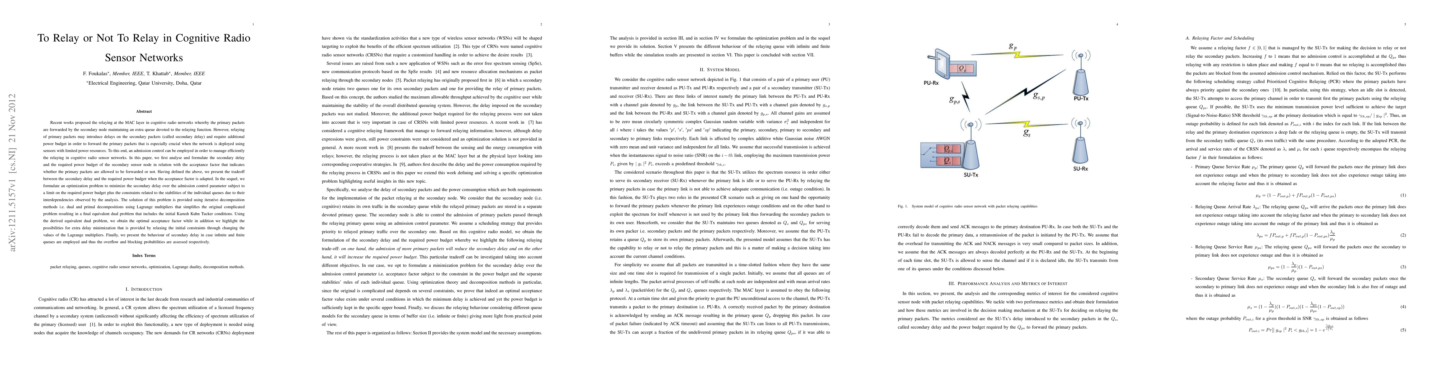 This paper analyzes the trade-off between secondary delay and power budget in cognitive radio sensor networks, focusing on relaying primary packets. It formulates an optimization problem to minimize secondary delay via adaptive acceptance factor, solved using dual and primal decomposition methods, and discusses strategies for further delay reduction by adjusting constraint parameters.