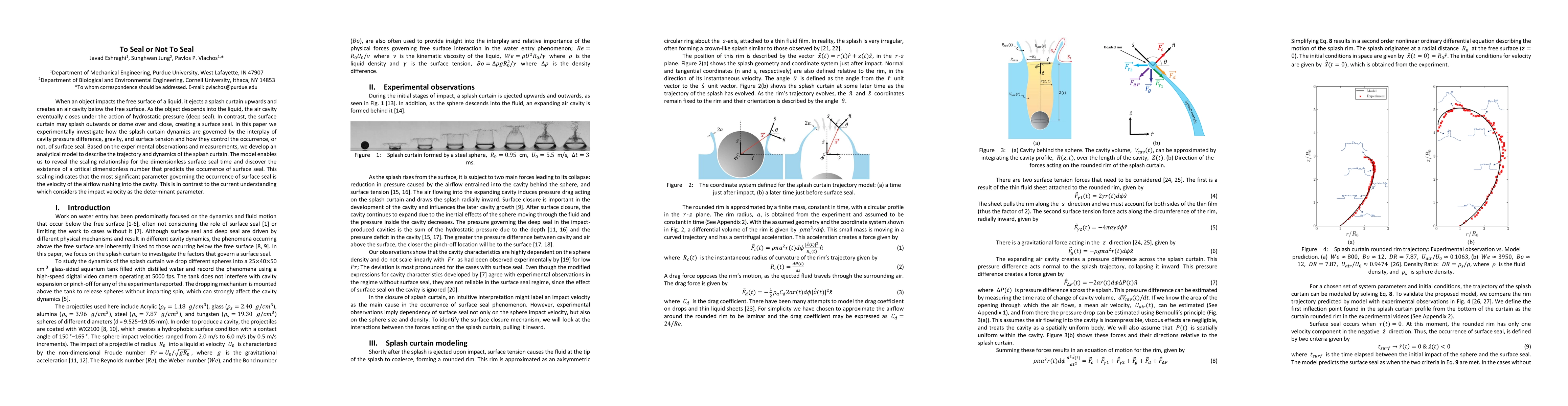 When an object impacts the free surface of a liquid, it ejects a splash curtain upwards and creates an air cavity below the free surface. As the object descends into the liquid, the air cavity eventually closes under the action of hydrostatic pressure (deep seal). In contrast, the surface curtain may splash outwards or dome over and close, creating a surface seal. In this paper we experimentally investigate how the splash curtain dynamics are governed by the interplay of cavity pressure difference, gravity, and surface tension and how they control the occurrence, or not, of surface seal. Based on the experimental observations and measurements, we develop an analytical model to describe the trajectory and dynamics of the splash curtain. The model enables us to reveal the scaling relationship for the dimensionless surface seal time and discover the existence of a critical dimensionless number that predicts the occurrence of surface seal. This scaling indicates that the most significant parameter governing the occurrence of surface seal is the velocity of the airflow rushing into the cavity. This is in contrast to the current understanding which considers the impact velocity as the determinant parameter.
