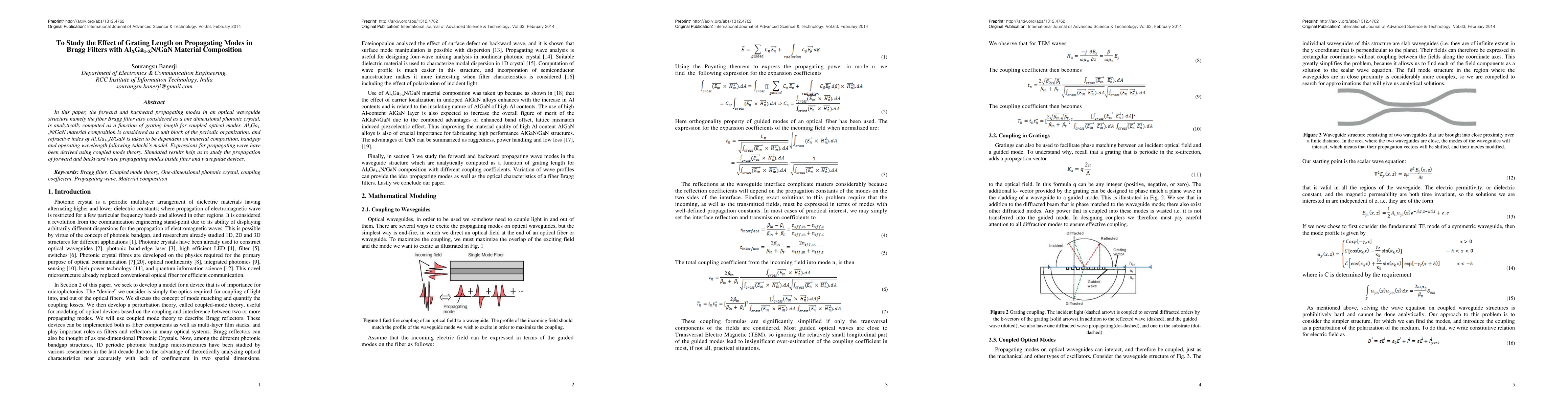 This paper analytically investigates the effect of grating length on forward and backward propagating modes in Bragg filters using AlxGa1-xN/GaN material composition. Using coupled mode theory, it derives expressions for wave propagation and simulates results to study the behavior of optical modes in fiber Bragg filters.
