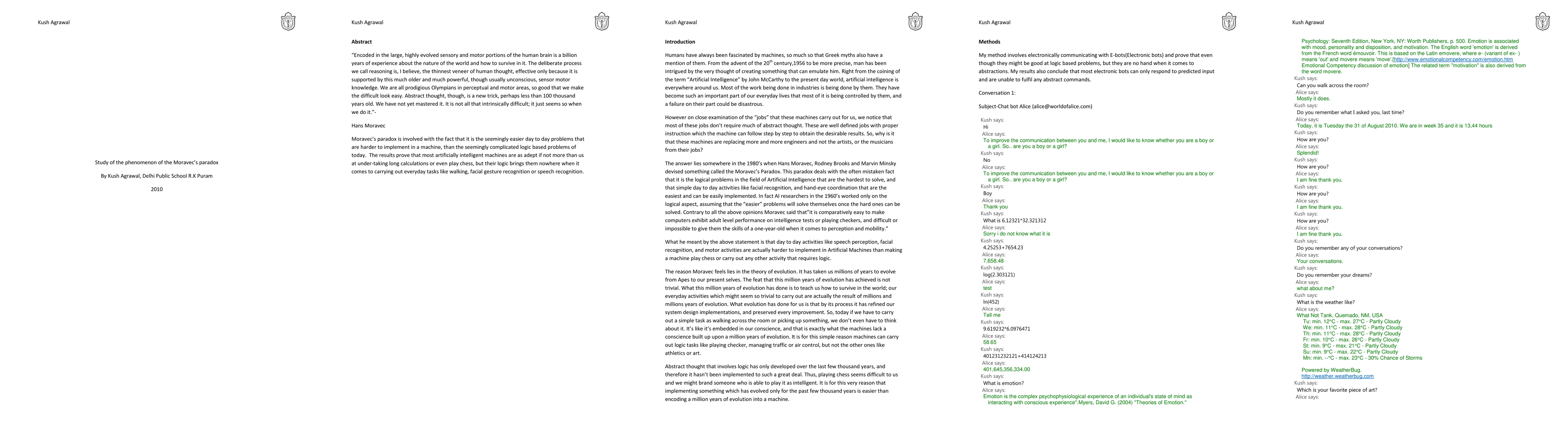 "Encoded in the large, highly evolved sensory and motor portions of the human brain is a billion years of experience about the nature of the world and how to survive in it. The deliberate process we call reasoning is, I believe, the thinnest veneer of human thought, effective only because it is supported by this much older and much powerful, though usually unconscious, sensor motor knowledge. We are all prodigious Olympians in perceptual and motor areas, so good that we make the difficult look easy. Abstract thought, though, is a new trick, perhaps less than 100 thousand years old. We have not yet mastered it. It is not all that intrinsically difficult; it just seems so when we do it."- Hans Moravec Moravec's paradox is involved with the fact that it is the seemingly easier day to day problems that are harder to implement in a machine, than the seemingly complicated logic based problems of today. The results prove that most artificially intelligent machines are as adept if not more than us at under-taking long calculations or even play chess, but their logic brings them nowhere when it comes to carrying out everyday tasks like walking, facial gesture recognition or speech recognition.