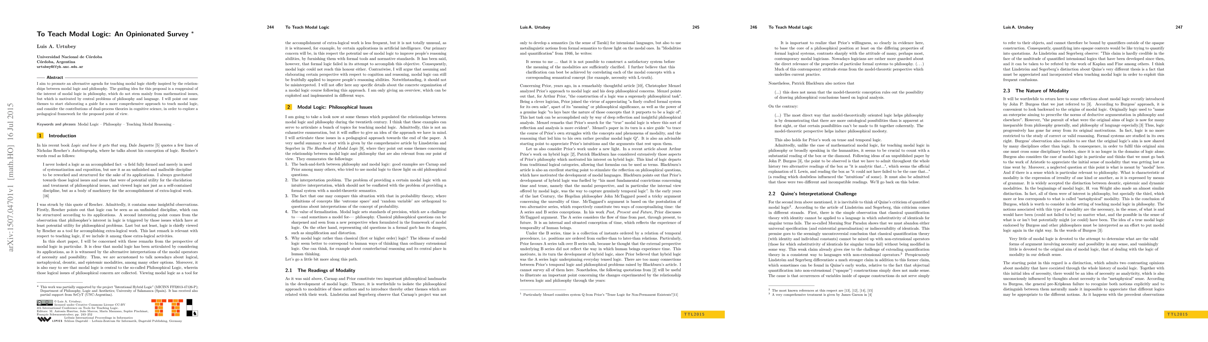 I aim to promote an alternative agenda for teaching modal logic chiefly inspired by the relationships between modal logic and philosophy. The guiding idea for this proposal is a reappraisal of the interest of modal logic in philosophy, which do not stem mainly from mathematical issues, but which is motivated by central problems of philosophy and language. I will point out some themes to start elaborating a guide for a more comprehensive approach to teach modal logic, and consider the contributions of dual-process theories in cognitive science, in order to explore a pedagogical framework for the proposed point of view.