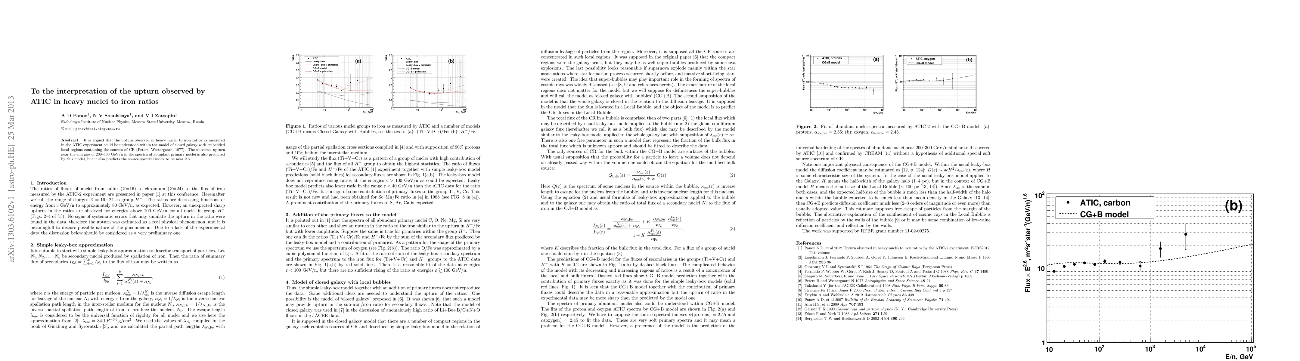 It is argued that the upturn observed in heavy nuclei to iron ratios as measured in the ATIC experiment could be understood within the model of closed galaxy with embedded local regions containing the sources of CR (Peters, Westergaard, 1977). The universal upturn near the energies of 200-300 GeV/n in the spectra of abundant primary nuclei is also predicted by this model, but it also predicts the source spectral index to be near 2.5.