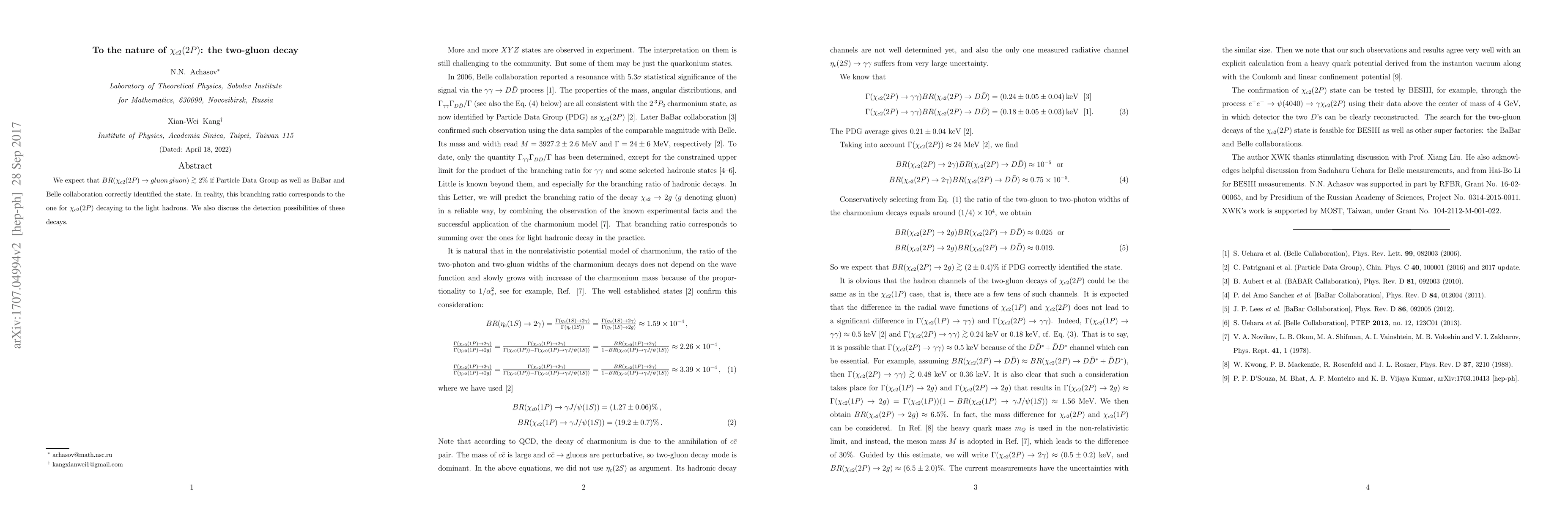 We expect that $BR(\chi_{c2}(2P)\to gluon\, gluon)\gtrsim 2 \%$ if Particle Data Group as well as BaBar and Belle collaboration correctly identified the state. In reality, this branching ratio corresponds to the one for $\chi_{c2}(2P)$ decaying to the light hadrons. We also discuss the detection possibilities of these decays.