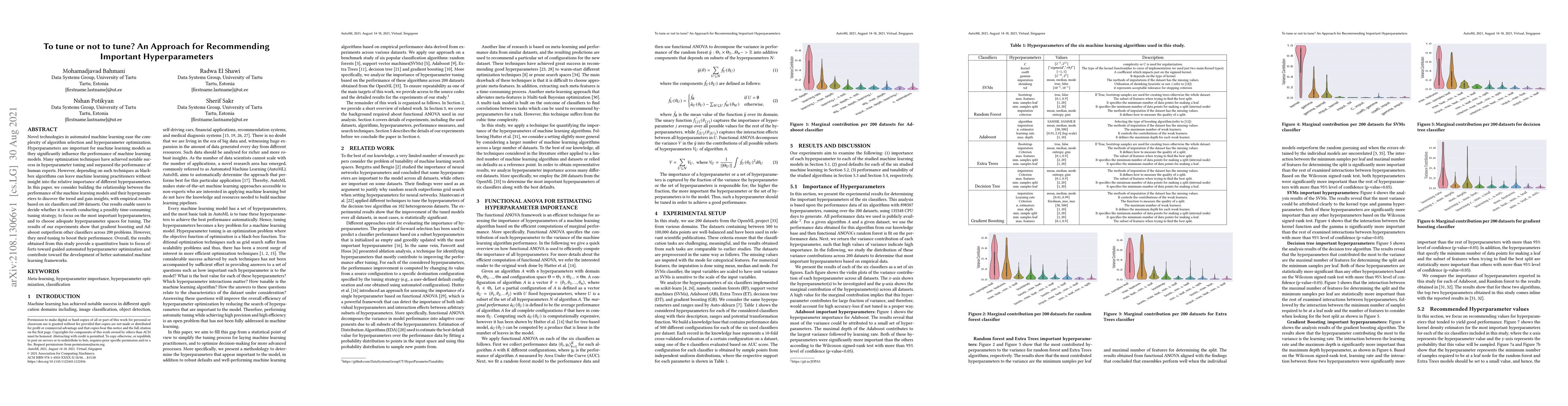 Novel technologies in automated machine learning ease the complexity of algorithm selection and hyperparameter optimization. Hyperparameters are important for machine learning models as they significantly influence the performance of machine learning models. Many optimization techniques have achieved notable success in hyperparameter tuning and surpassed the performance of human experts. However, depending on such techniques as blackbox algorithms can leave machine learning practitioners without insight into the relative importance of different hyperparameters. In this paper, we consider building the relationship between the performance of the machine learning models and their hyperparameters to discover the trend and gain insights, with empirical results based on six classifiers and 200 datasets. Our results enable users to decide whether it is worth conducting a possibly time-consuming tuning strategy, to focus on the most important hyperparameters, and to choose adequate hyperparameter spaces for tuning. The results of our experiments show that gradient boosting and Adaboost outperform other classifiers across 200 problems. However, they need tuning to boost their performance. Overall, the results obtained from this study provide a quantitative basis to focus efforts toward guided automated hyperparameter optimization and contribute toward the development of better-automated machine learning frameworks.