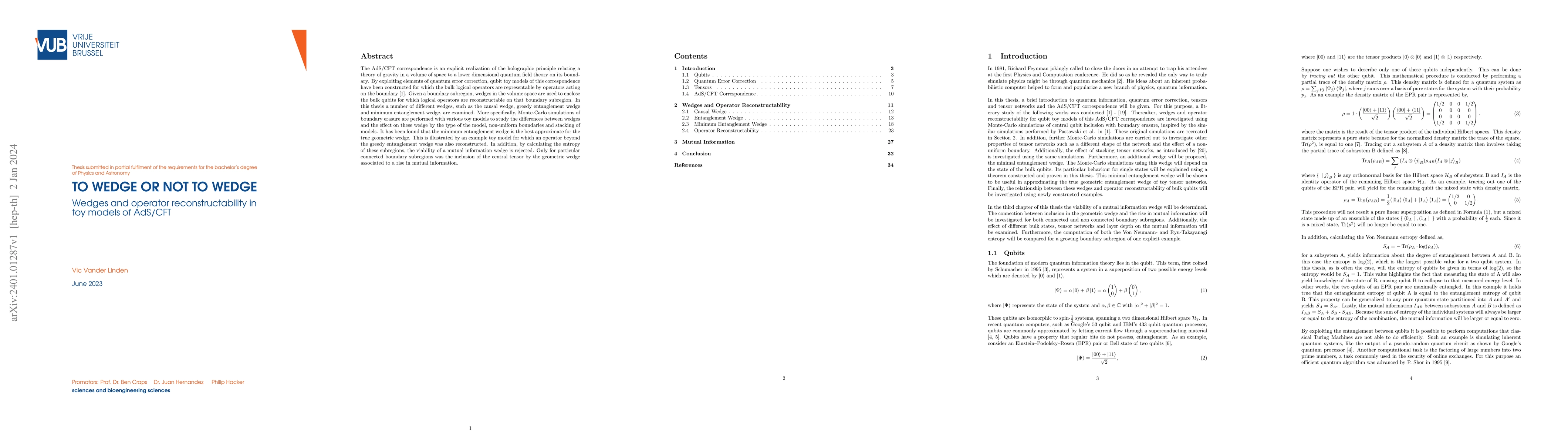 This paper explores various types of wedges in toy models of the AdS/CFT correspondence, using Monte-Carlo simulations to compare their effectiveness in reconstructing bulk logical operators on the boundary. The minimum entanglement wedge was found to best approximate the true geometric wedge, while the mutual information wedge was deemed less viable.