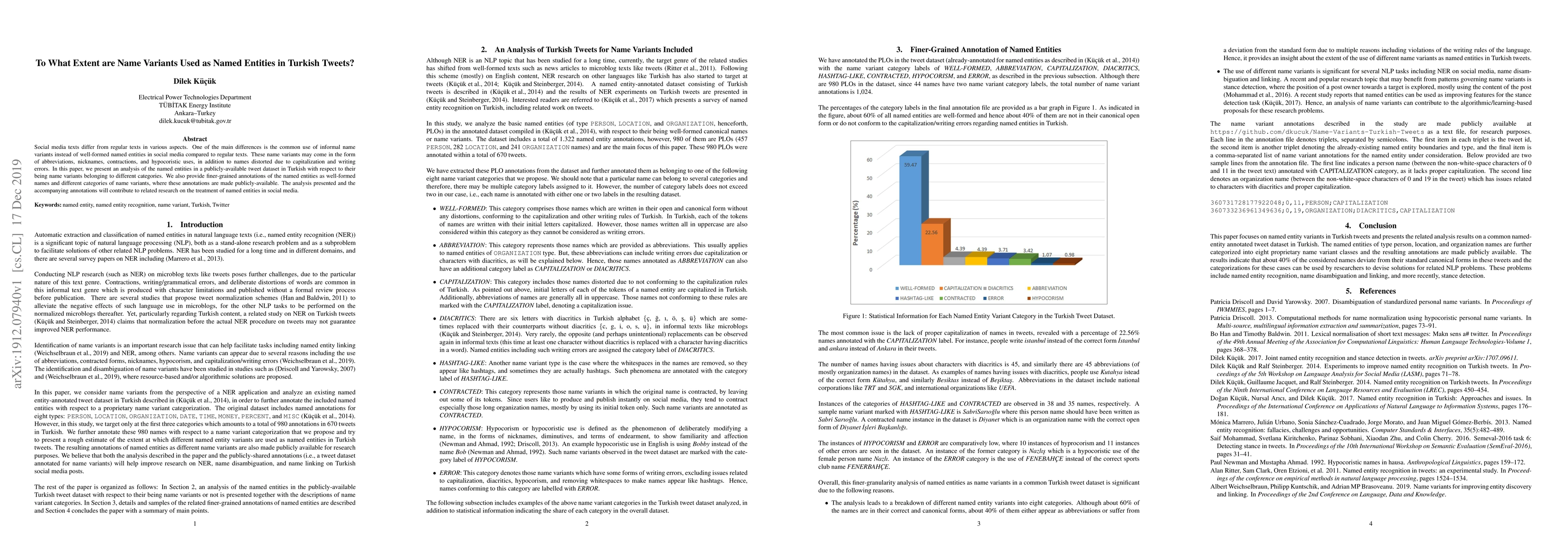 This paper analyzes named entities in Turkish tweets, focusing on the prevalence of informal name variants like abbreviations and nicknames. It provides detailed annotations of these variants and aims to enhance research on named entity recognition in social media.