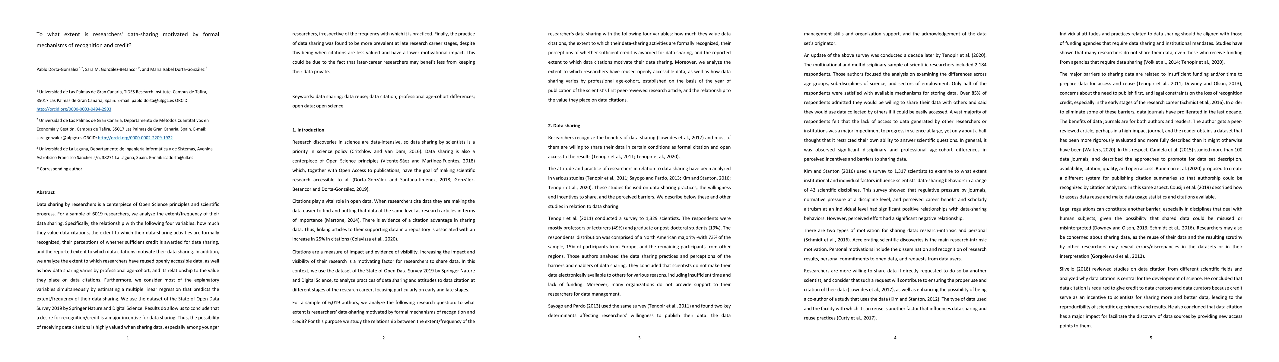 Researchers share data more often when they expect recognition and credit, with younger researchers valuing citations most. Data sharing becomes more common at later career stages despite lower citation value.