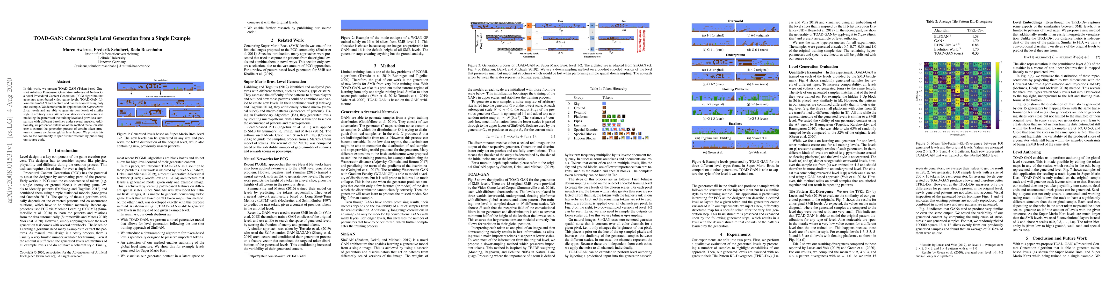 In this work, we present TOAD-GAN (Token-based One-shot Arbitrary Dimension Generative Adversarial Network), a novel Procedural Content Generation (PCG) algorithm that generates token-based video game levels. TOAD-GAN follows the SinGAN architecture and can be trained using only one example. We demonstrate its application for Super Mario Bros. levels and are able to generate new levels of similar style in arbitrary sizes. We achieve state-of-the-art results in modeling the patterns of the training level and provide a comparison with different baselines under several metrics. Additionally, we present an extension of the method that allows the user to control the generation process of certain token structures to ensure a coherent global level layout. We provide this tool to the community to spur further research by publishing our source code.