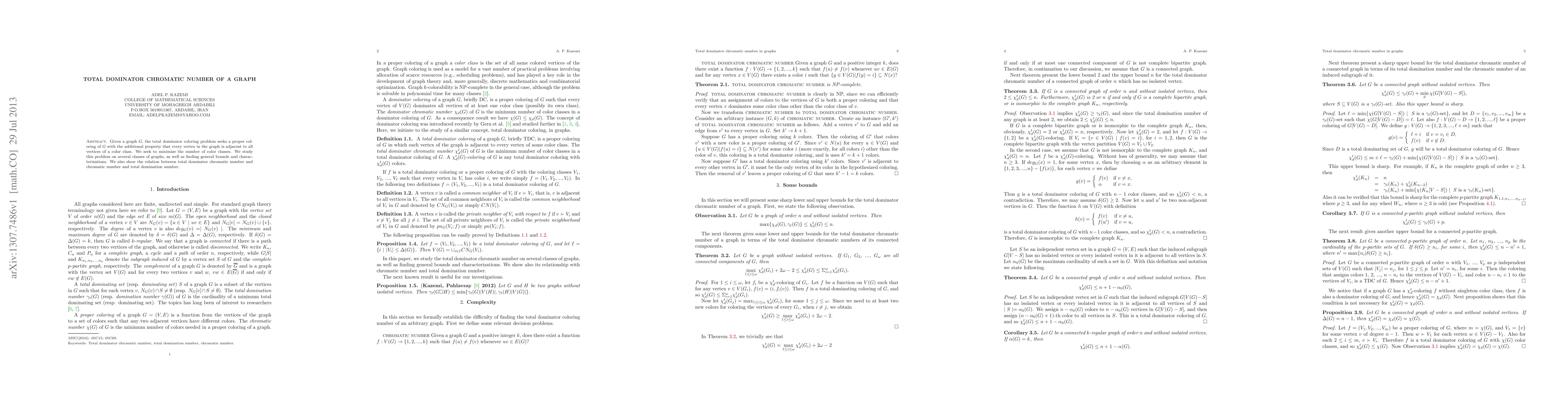 This paper investigates the total dominator coloring problem, aiming to minimize the number of color classes in a graph where each vertex is adjacent to all vertices of a color class. The study explores various graph classes, establishes bounds, and characterizes the relationship between total dominator chromatic number, chromatic number, and total domination number.